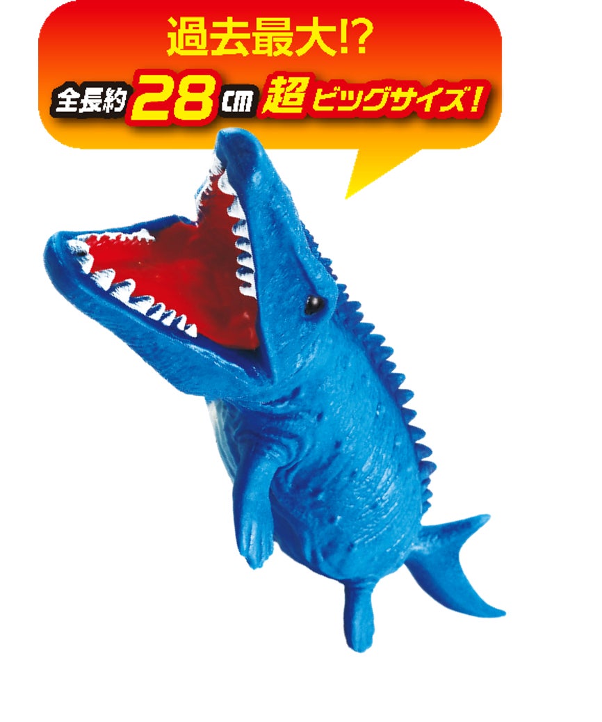 フィギュアのサイズは大きいもので全長約28cmあり(モササウルス)、ビッグサイズで海の恐竜の迫力を味わえます。