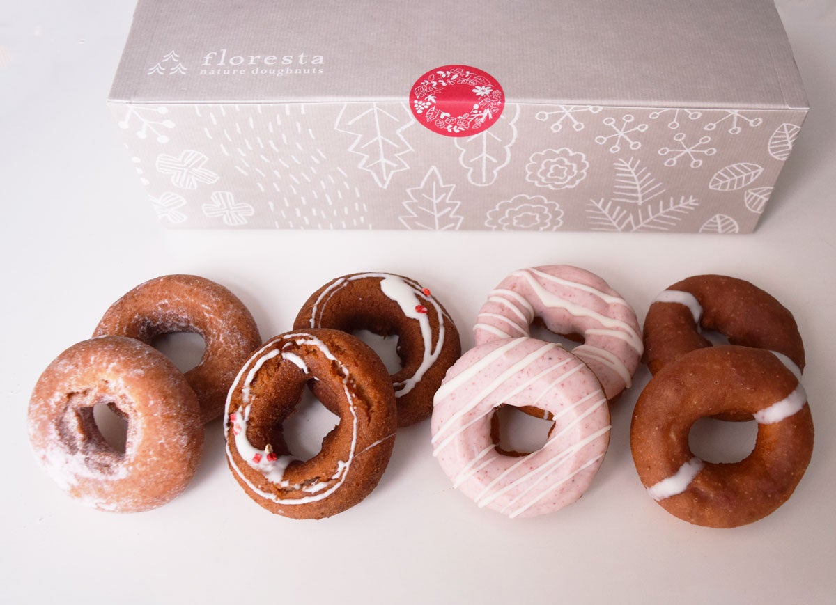 フロレスタは、北海道産小麦粉や国産大豆の無調整豆乳など、素材にこだわり、お店で一つひとつ丁寧に手づくりしているドーナツ専門店です。一番人気である「ネイチャードーナツ」はいつでも揚げたてを提供しています。小さなお子さまからご年配の方まで幅広い層の方々に親しまれています。どの製品も日持ちさせるための防腐剤・保存料などは一切使用しておりませんので、からだに優しく安心です。そのため、できるだけ早くお召し上がりいただき、保存される場合は冷凍をおすすめしています。 自然解凍で美味しくお召し上がりいただけます。