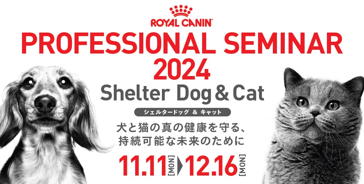 栄養学に基づいて犬と猫の健康を実現する企業(Health Through Nutrition Company)として、プレミアムペットフードおよび食事療法食を展開するロイヤルカナン ジャポン(本社:東京都港区、社長:日下部 真一)は、シェルターという特殊な環境で暮らす犬と猫の健康を守るための学術セミナー「PROFESSIONAL SEMINAR 2024 Shelter Dog & Cat 犬と猫の真の健康を守る、持続可能な未来のために」を、11月11日(月)から12月16日(月)までオンラインで開催します。