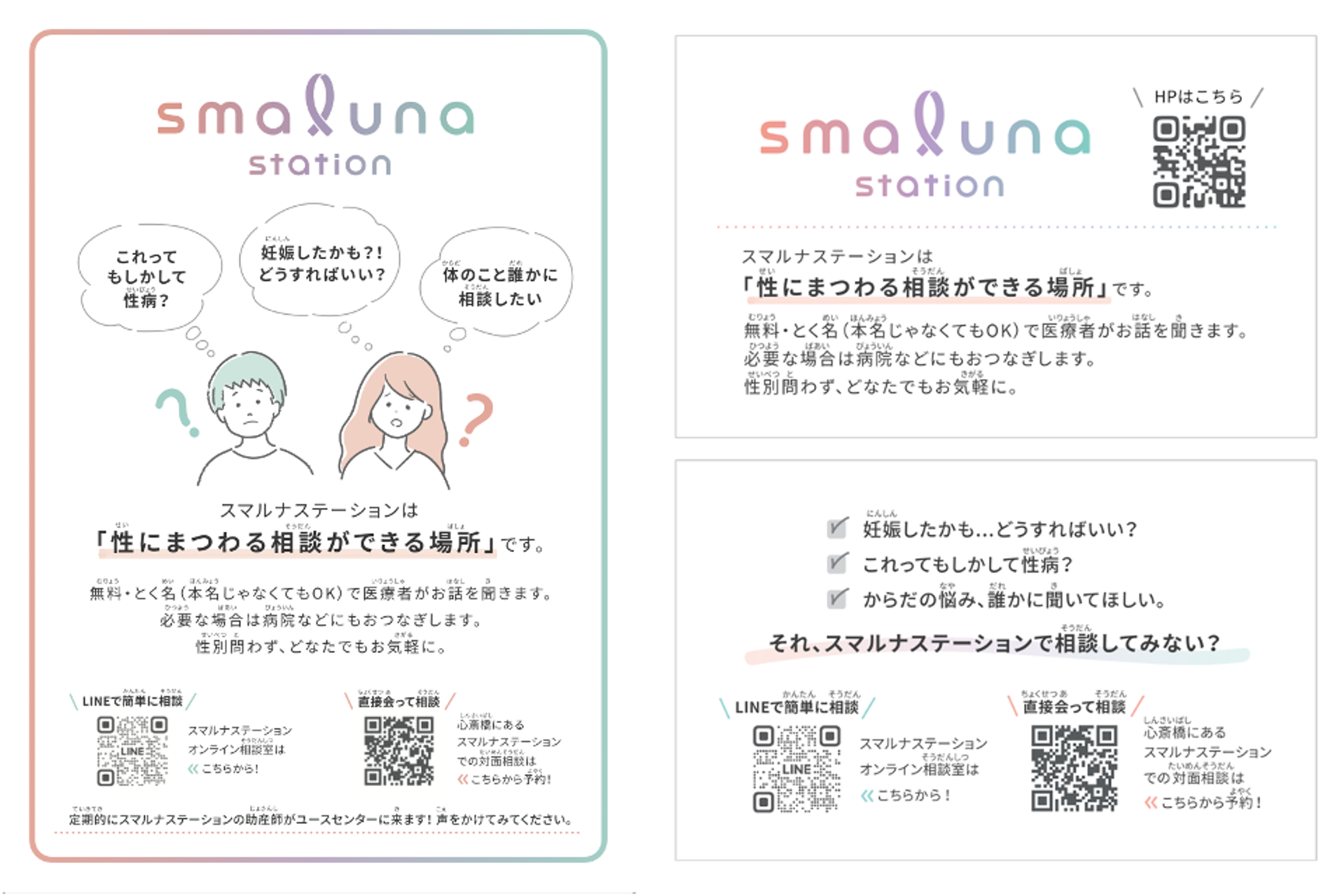 ユースセンター開設にあたり、“若者が集う場所に助産師などの専門家が直接出向くことで、より若者が性に関する相談をしやすい環境を作れる”と考え、スマルナステーションで日頃性にまつわる相談を受けている助産師がユースセンターに出向く、「出張スマルナステーション」を実施することとなりました。
