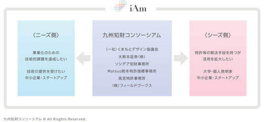 また、大熊本証券は、知財を活用した企業支援を開始しています。昨年度より、北陸の今村証券および一般財団法人地域未来創生機構と知財を活用した企業支援を開始しました。さらに、今年度からは、地域でのエコシステムの自律的成長の鍵は「組織の枠を超えた無形資産の共有」であるとして、iAmを推進しています。iAmは無形資産のニーズ側の企業とシーズ側の企業のマッチングサービスであり、FUNDINNOで資金調達を実施した企業の紹介を予定しています。