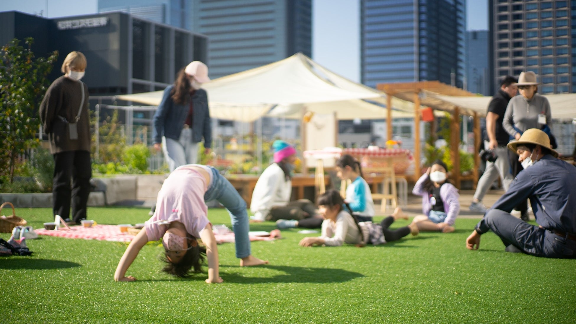 併せてイベント参加者の方々が利用できるファームガーデンやコンポスト、各種イベントが実施できる広場も配置しております。また子供だけでなく、地域住民やオフィスワーカー等の大人も楽しめるイベントも毎月開催しております。