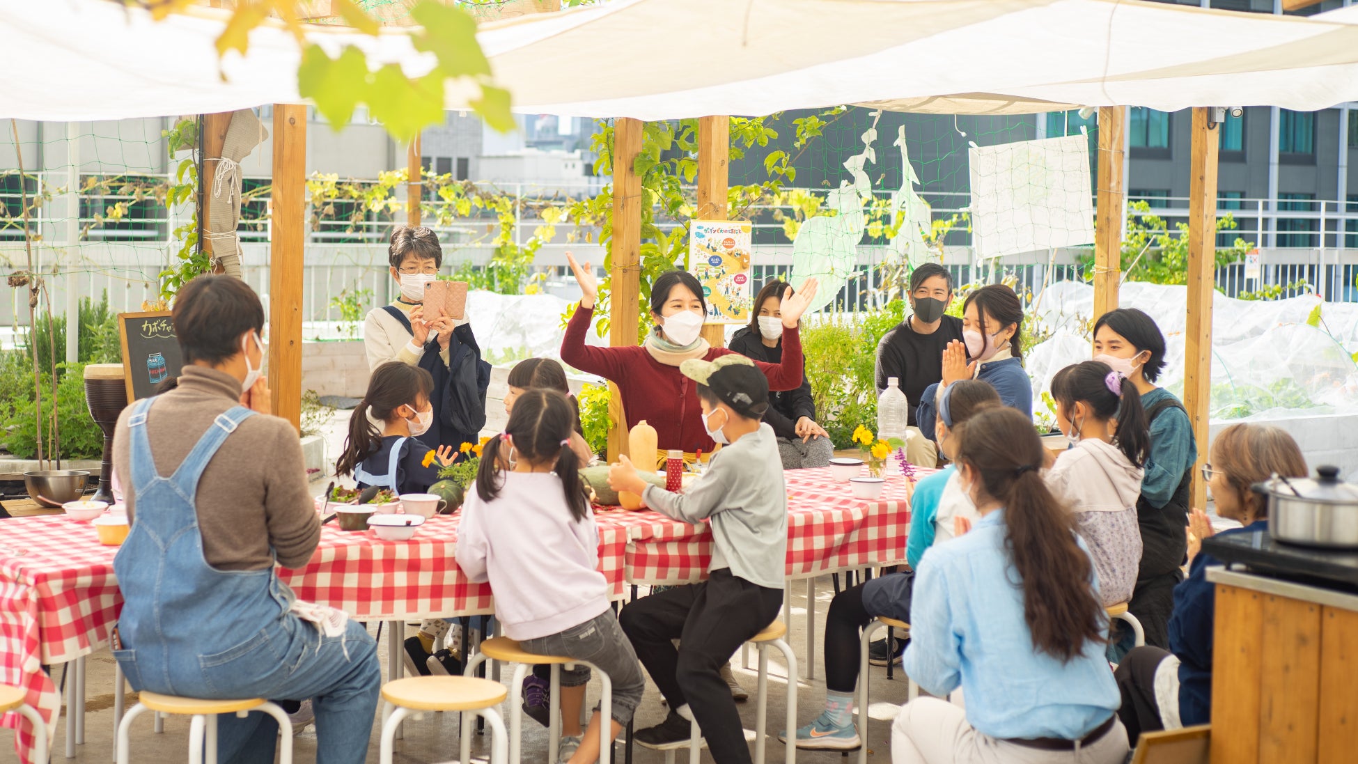 カヤバエンは建物の屋上を有効活用することで、「食」についての持続可能な地域循環の実現と教育の実践、それに豊かな地域社会に向けた貢献に寄与する場となることを目指しておりますが、特に、子どもたちの食育体験の場の創出として、一般社団法人エディブル・スクールヤード・ジャパン(本店:東京都中央区、代表:堀口 博子)(以下、「ESYJ」)が取り組む“育てる、食べる”ことを通して生きる力を育む「エディブル・エデュケーション」による自然学校「アーススコーレ」を実施しています。土を耕し、種を蒔き、収穫し、食卓を囲むといった一連の食農サイクルとともに生命(いのち)のつながりに親しみ学ぶ内容となっております。ESYJが牽引する菜園教育は、都心に住む土に触れる機会の少ない子どもたちにとって貴重な学びの庭となることでしょう。なお、その独自の教育プログラムを体験できるオフィスビルは日本では初めてとなります。