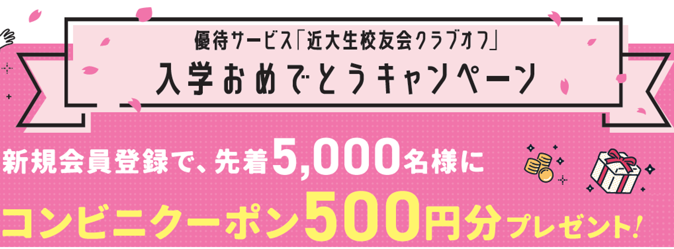 ●入学お祝いキャンペーンとして、先着5,000名にコンビニクーポン(500円分)をプレゼント