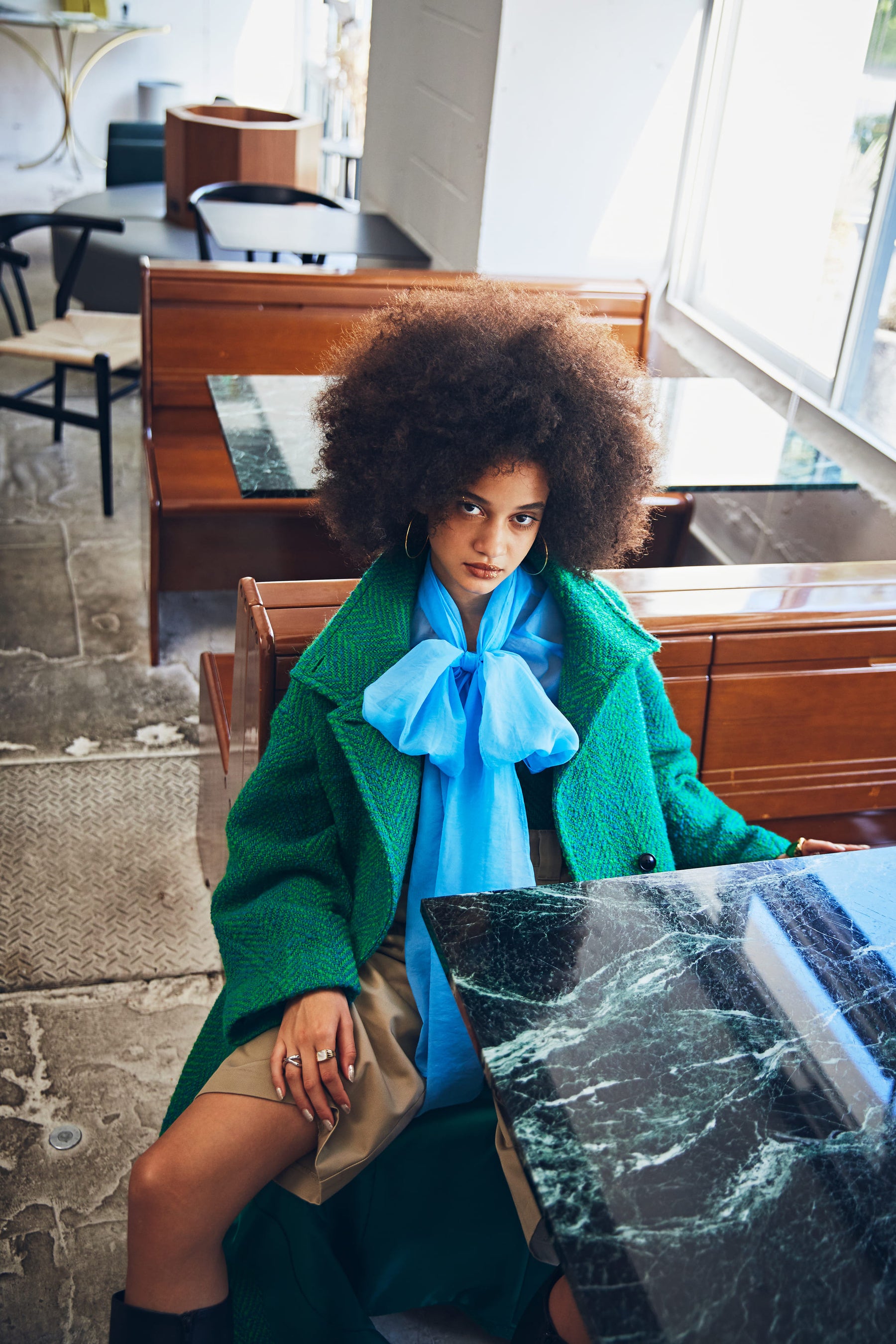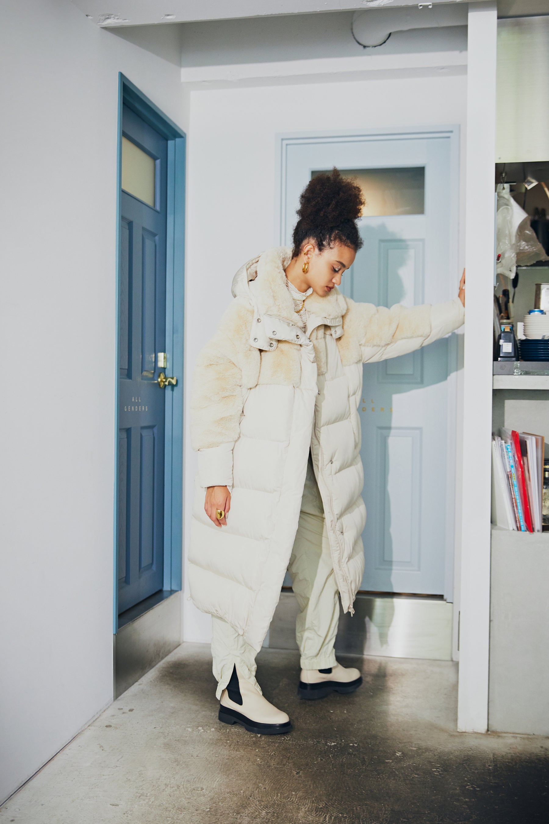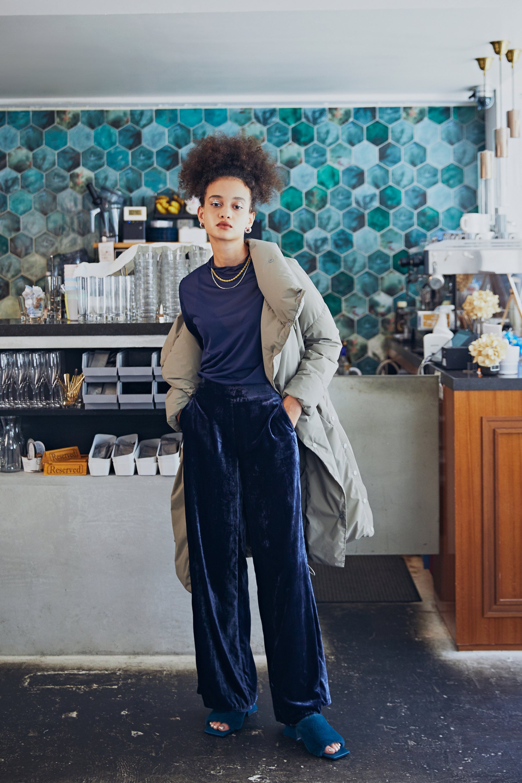 ROSE BUDで展開する様々なテイストのアイテムをMIXコーディネートした冬のLOOK。