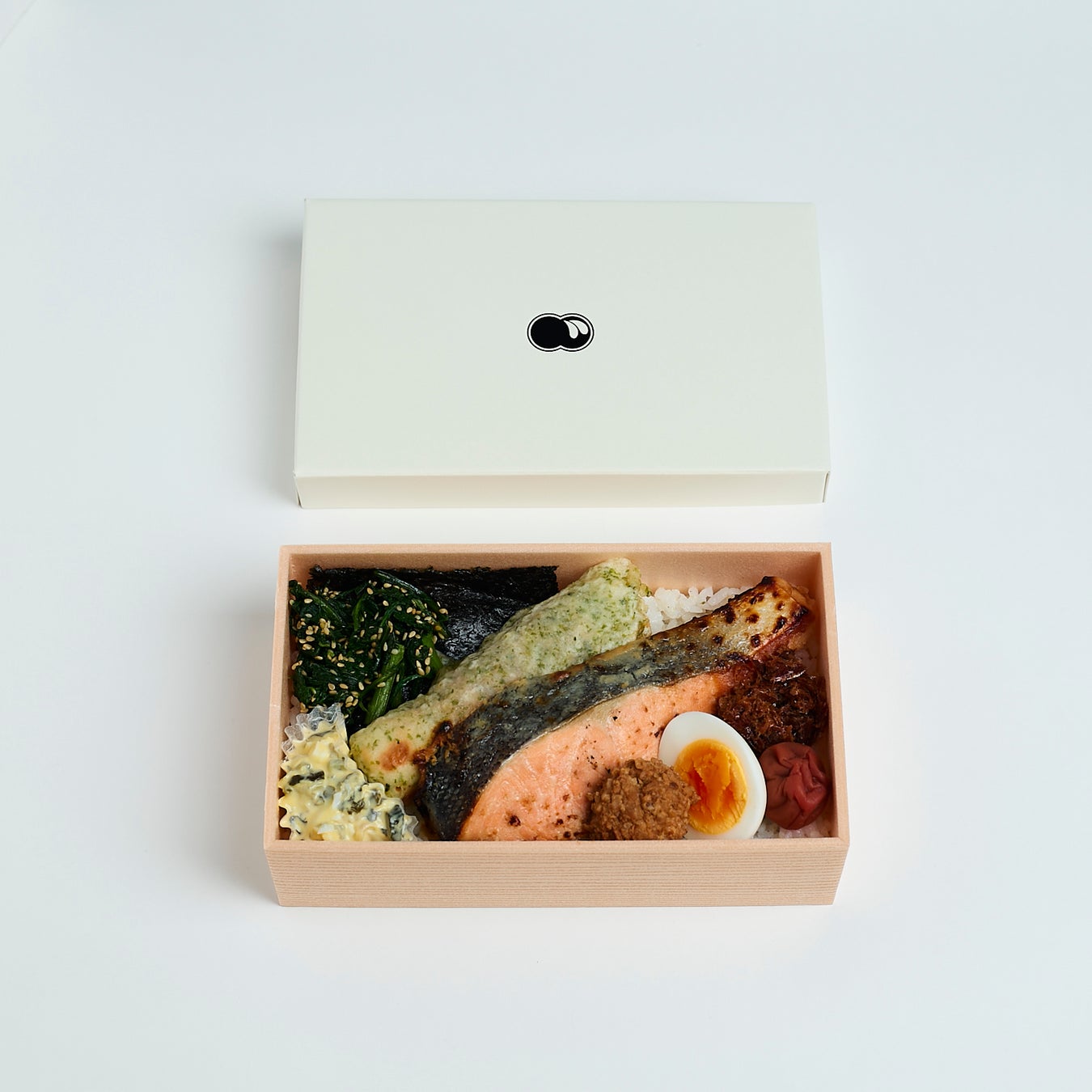 港区芝大門に店舗を構える、日本料理「くろぎ」さんの楽屋弁当を特別にご用意いたしま した。素材の個性を最大限に引き出すその姿に猿田彦珈琲は強く共感し、日々勉強させていただいています。ふっくらと炊き上げた白米の上には鮭や磯辺揚げなど、食欲をそそら れるお弁当です。店内、お持ち帰りどちらも利用可能です。