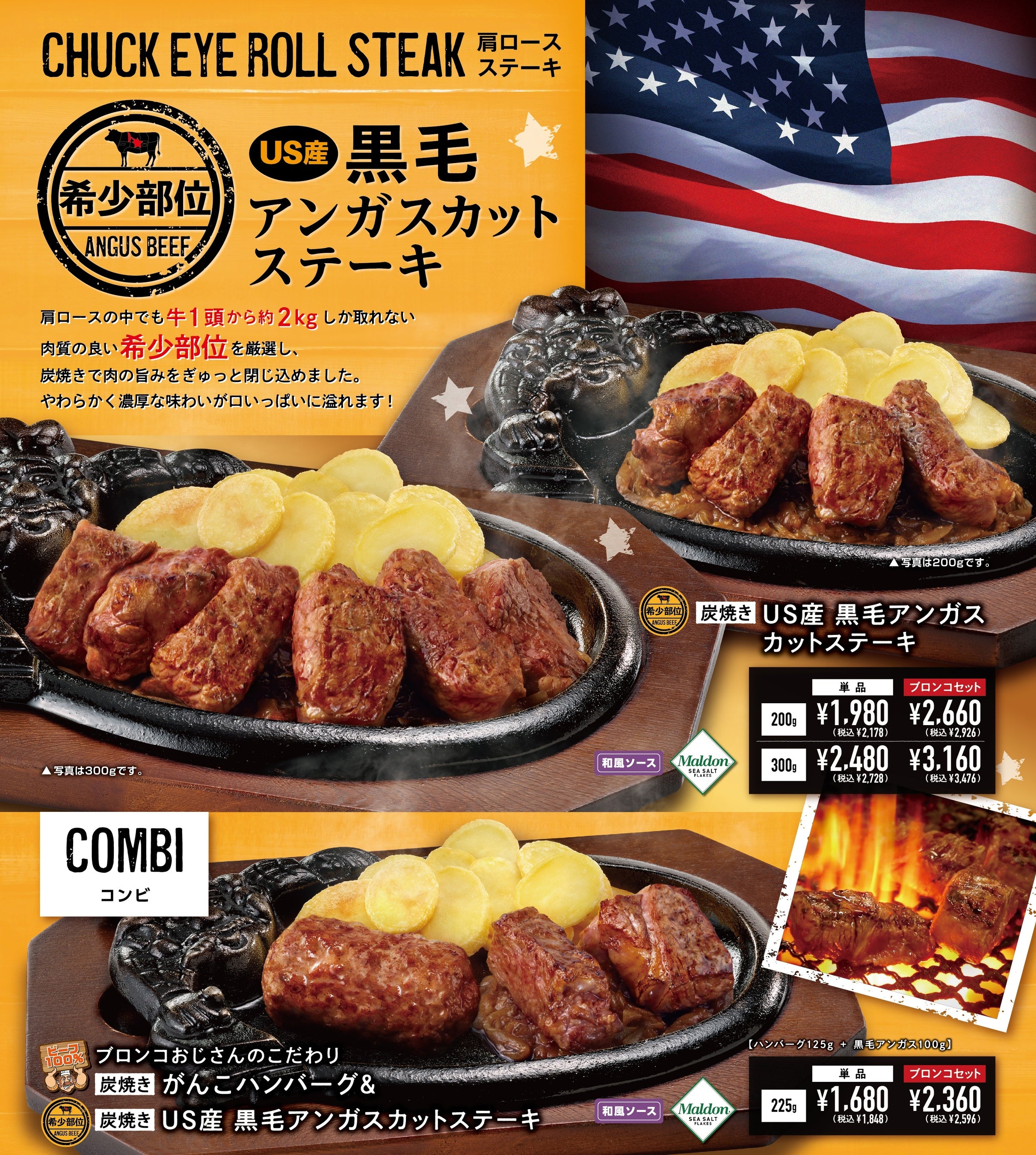 ステーキハウス ブロンコビリーを全139店舗展開する株式会社ブロンコビリー(本社:愛知県名古屋市 代表取締役社長:竹市 克弘)は、やわらかく濃厚な赤身の『炭焼きUS産アンガスカットステーキ』を2月5日(水)より期間限定で登場します。