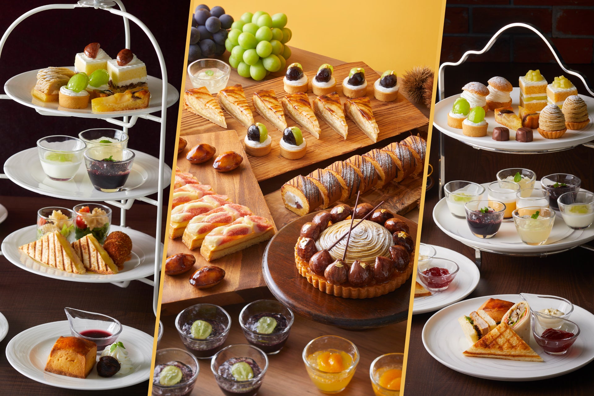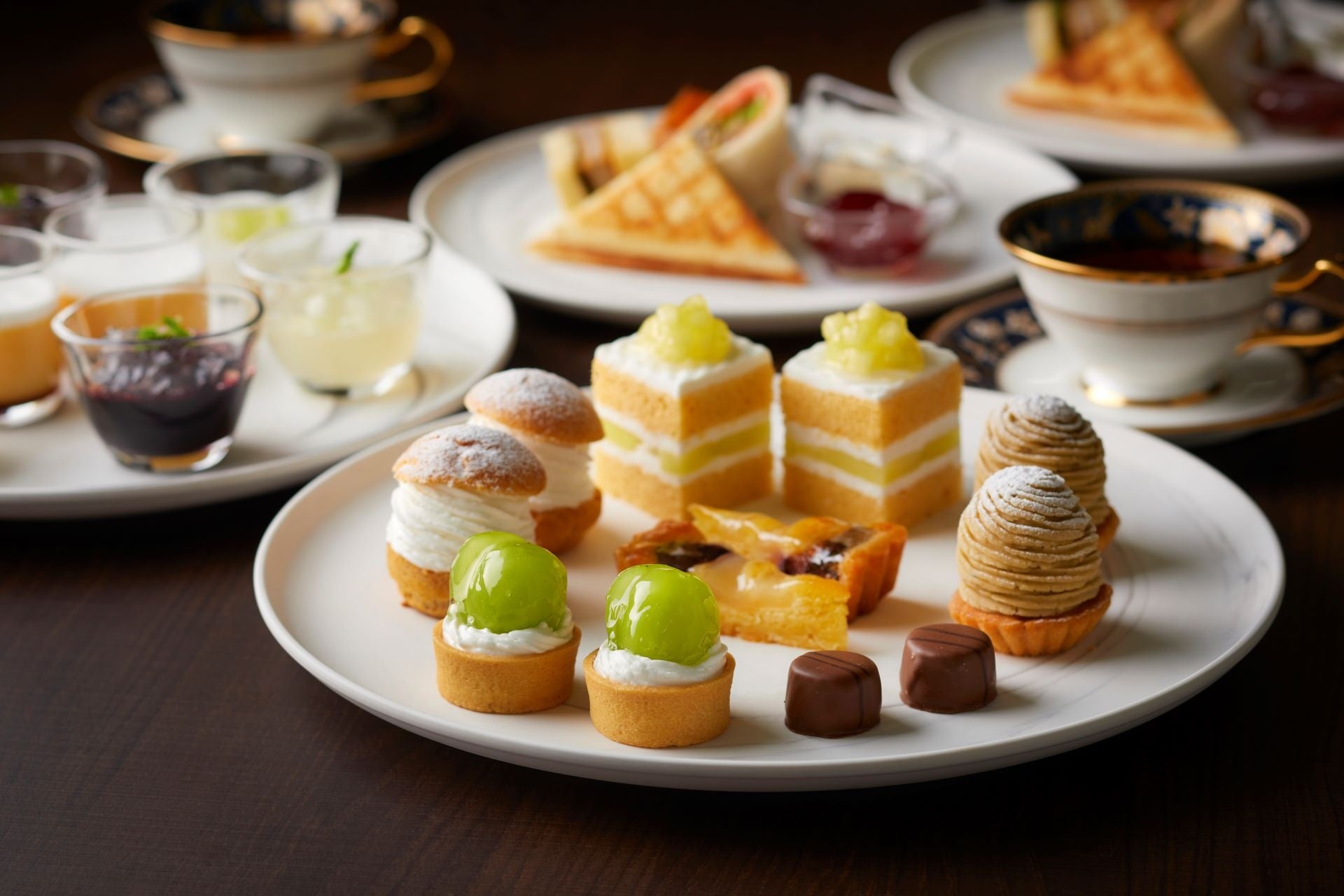 ホテルニューオータニの“秋の風物詩”スーパーモンブランがウェルカムスイーツとして登場する他、マロン、葡萄、洋梨など秋スイーツがラインナップ。栗の優しい甘さが広がる「マロンミルフィーユ」や「さつまいもと紅茶のタルト」、「マロンロール」など秋を締めくくるにふさわしいスイーツが勢ぞろい。今年のスイーツビュッフェの中でも人気の「The ○○」シリーズ。今回はつやつやに輝く“葡萄”を表現した「The Budo」をお楽しみください。
