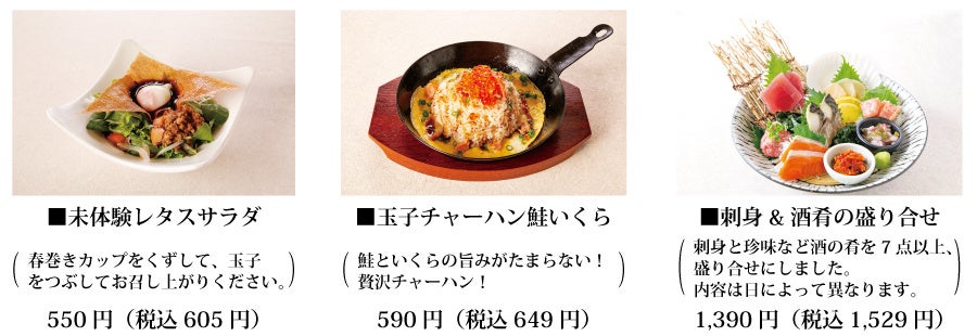 の居酒屋の先駆けとしてスタートしたとりあえず吾平は、個室感のある客席が人気で、若者からご年配まで、ご家族連れや地域での集まりなど、幅広いお客様層やシチュエーションにてご利用を頂いております。フード、ドリンクのメニューはリーズナブルなお値段で、全メニューの約7割が一品390円(税別)以下でお楽しみいただけます。また、郊外型居酒屋店ならではの特徴として、お車でお越し頂くお客様にも楽しんで頂けるようノンアルコールカクテルやノンアルコールドリンクの品揃えが充実しております。フードメニューも数多い商品を取り揃え、食事のみでのご来店のお客様にも喜んで頂けるメニュー構成となっております。