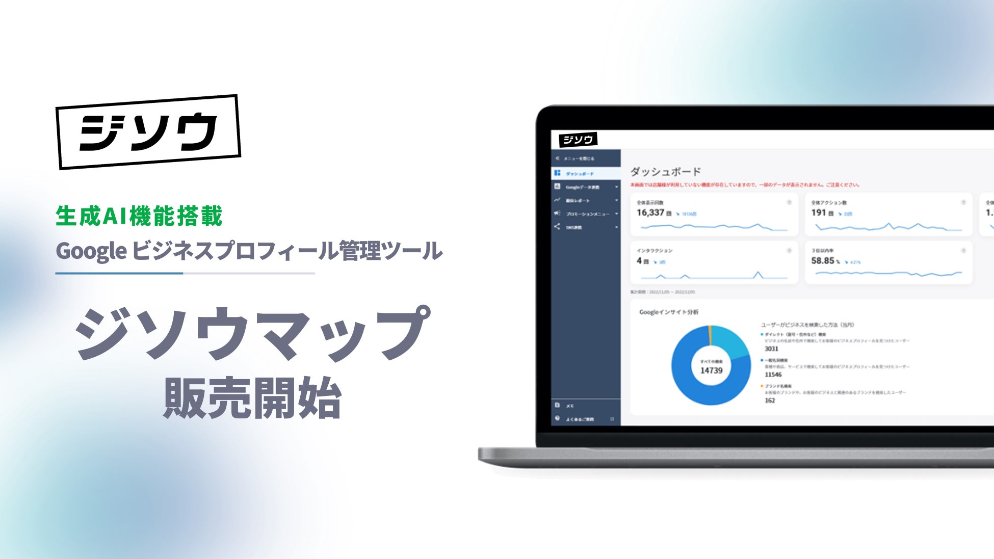株式会社ラバブルマーケティンググループ(本社:東京都港区、代表取締役社長:林 雅之、証券コード:9254)の子会社で、企業のSNSマーケティングの自走支援を行う株式会社ジソウ(本社:東京都港区、代表取締役:本門 功一郎、以下「ジソウ」)は、生成AI機能を搭載したGoogleビジネスプロフィール管理ツール「ジソウマップ」の販売を開始いたします。