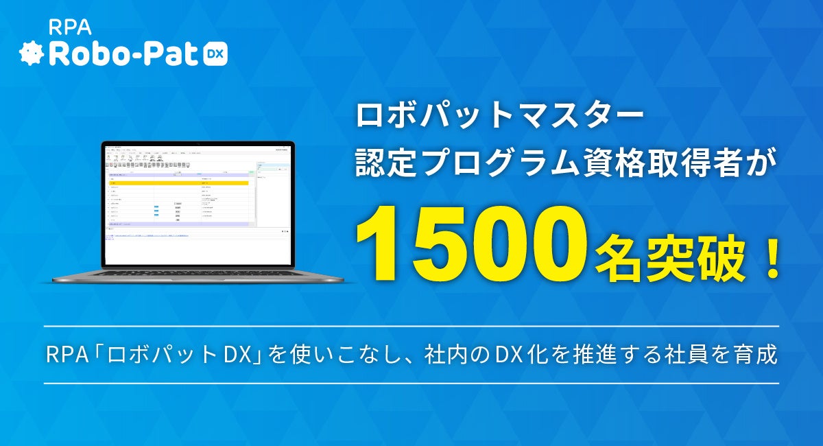 ロボパットマスター認定プログラム資格取得者が1500名突破!~RPA「ロボパットDX」を使いこなし、社内のDX化を推進する社員を育成~