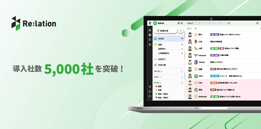 顧客対応クラウド『Re:lation』、導入社数5,000社を突破