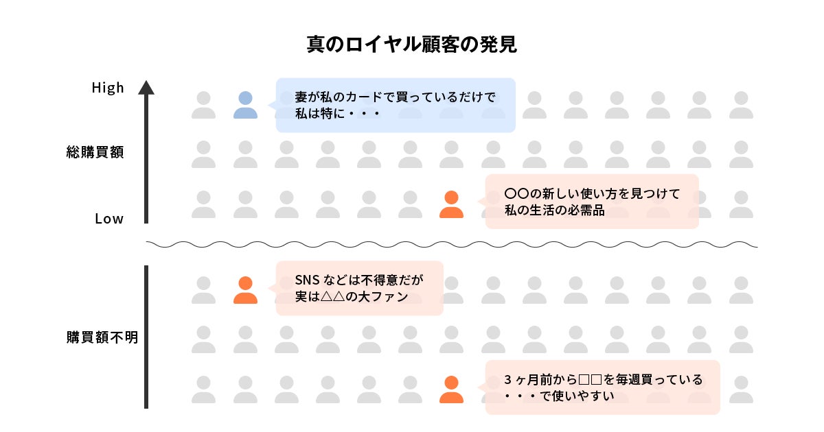 ・効果:購買額が多いだけでない、購入後の商品使用体験を含めた「真のロイヤル顧客」の発見