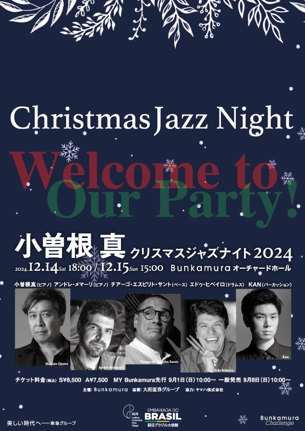 2024年12月14日(土)・15日(日)にBunkamuraオーチャードホールにて『小曽根真 クリスマス・ジャズナイト2024』“Welcome to Our Party!”を開催します。