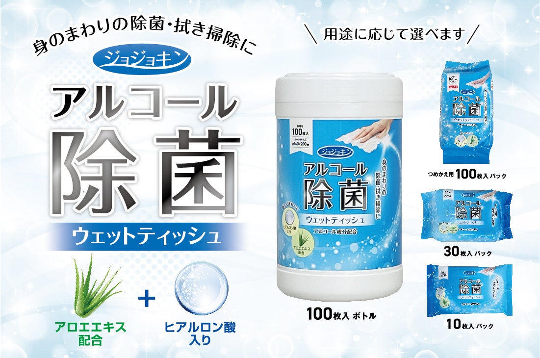 【用途に合わせて4種類から選べる】会社・家庭・外出先の除菌に活躍「アルコール除菌ウェットティッシュ ジョジョキン」新発売