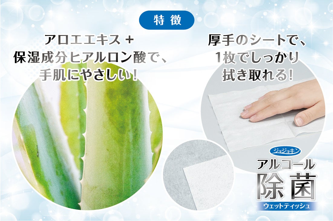 - 「アルコール除菌ウェットティッシュ ジョジョキン」3つの特徴