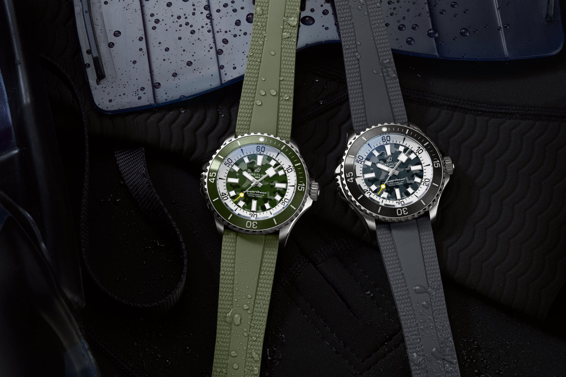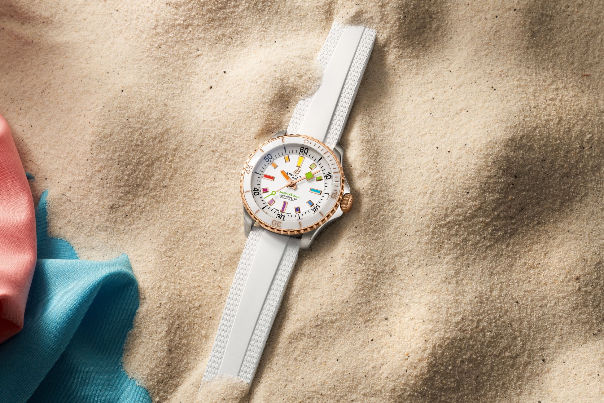 ブライトリングCEOであるジョージ・カーンは、これら新モデルの本質を次のように捉えています。「夏が訪れるとともに、カラフルなスーパーオーシャンの新作は、波乗りの際はもちろんのこと、ビーチサイドのディナーでくつろぐ時にも究極のパートナーとなることでしょう。」