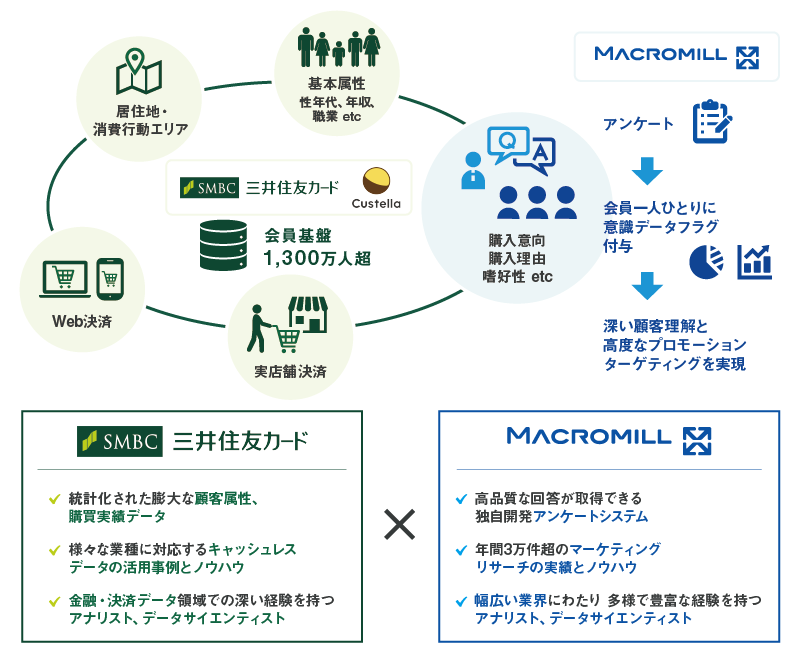 三井住友カードのキャッシュレスデータ分析支援サービス「Custella」とマクロミルのネットリサーチシステムの連携を開始