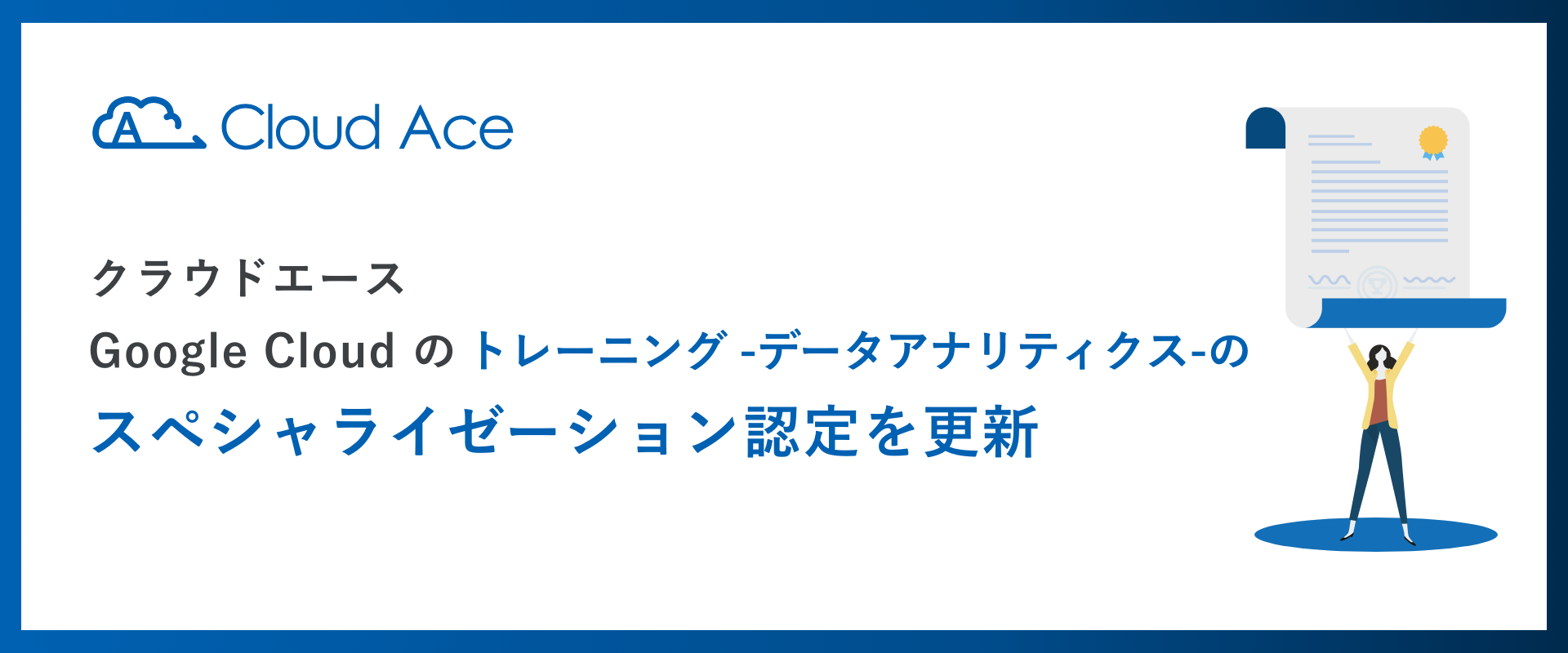 クラウドエース株式会社(本社:東京都千代田区、代表取締役社長:青木 誠)は、 2022 年 10 月 19 日、Google Cloud Partner Advantage プログラムで、データ分析分野におけるトレーニングのスペシャライゼーション認定を更新しました。これを記念して、トレーニング無償提供キャンペーンを実施します。