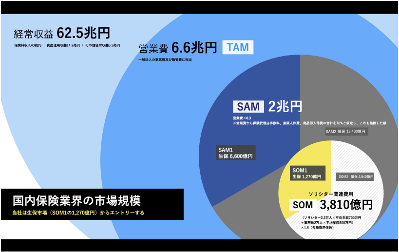 ※SEIMEI社がSOM1として定義する「保険プラットフォーム」事業ドメインは、以下の生命保険会社全42社及び主要損害保険会社32社が運営する業務領域及び、その保険商品を取り扱う保険代理店の業務領域の全てを指します。