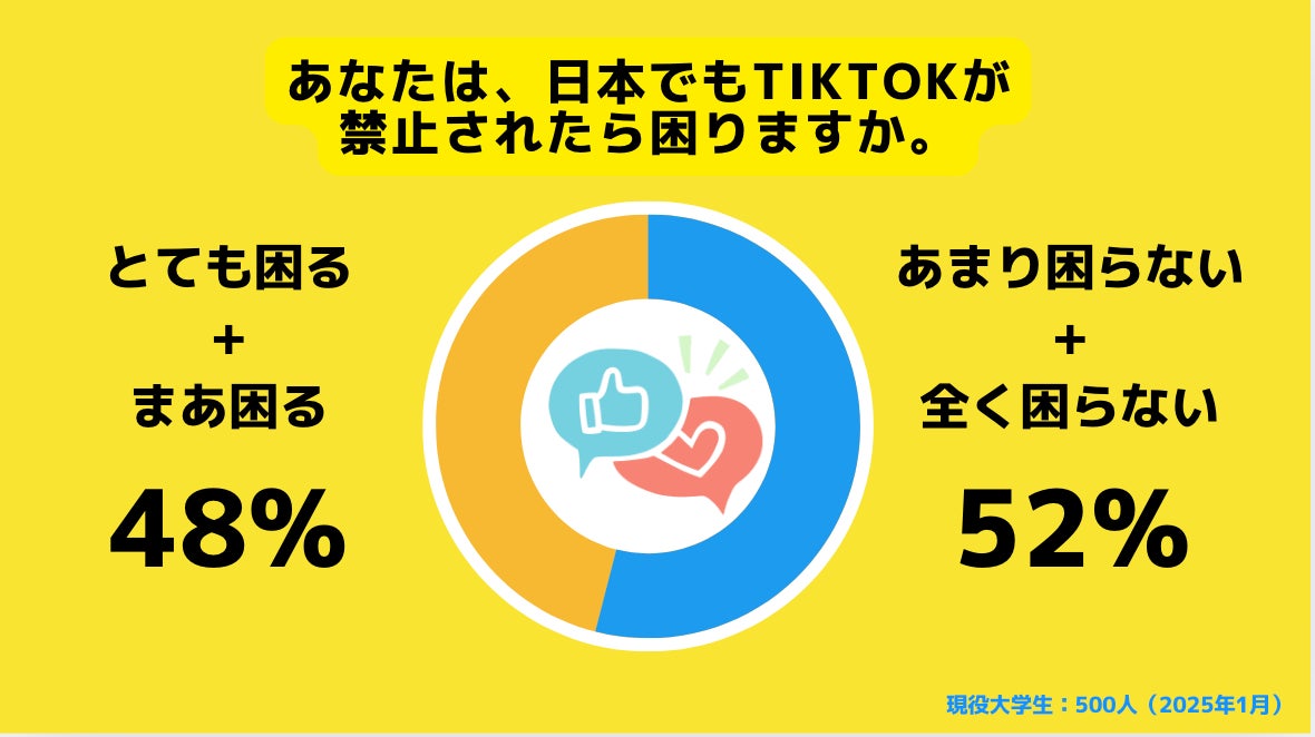 ■現役大学生の46%が日本でもTiktokが禁止されたら「困る」。