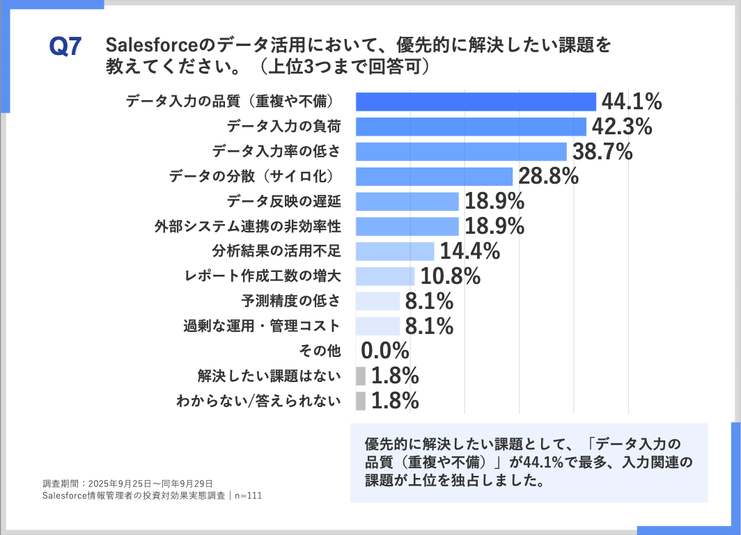 【調査レポート】Salesforce運用 “板挟み” と “ジレンマ” ~6割超が経営層から活用・ROIの指摘、一方で7割が「入力データの品質」を課題視~