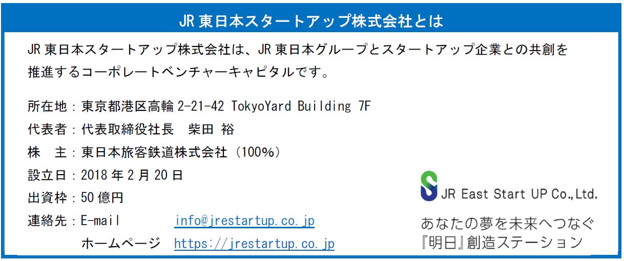 - 東日本旅客鉄道株式会社(代表取締役社長:深澤祐二)とJR東日本スタートアップ株式会社(代表取締役社長:柴田裕)は、ベンチャー企業や優れた事業アイデアを有する方々との協業によるビジネス創造活動「JR東日本スタートアッププログラム2022」を開催します。