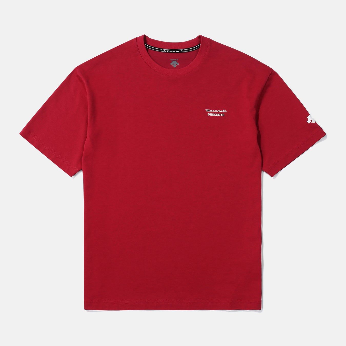 ゆとりのあるオーバーサイズのTシャツ。背面には『マセラティ』のスクリプトロゴとイタリアンフラッグをデザイン。
