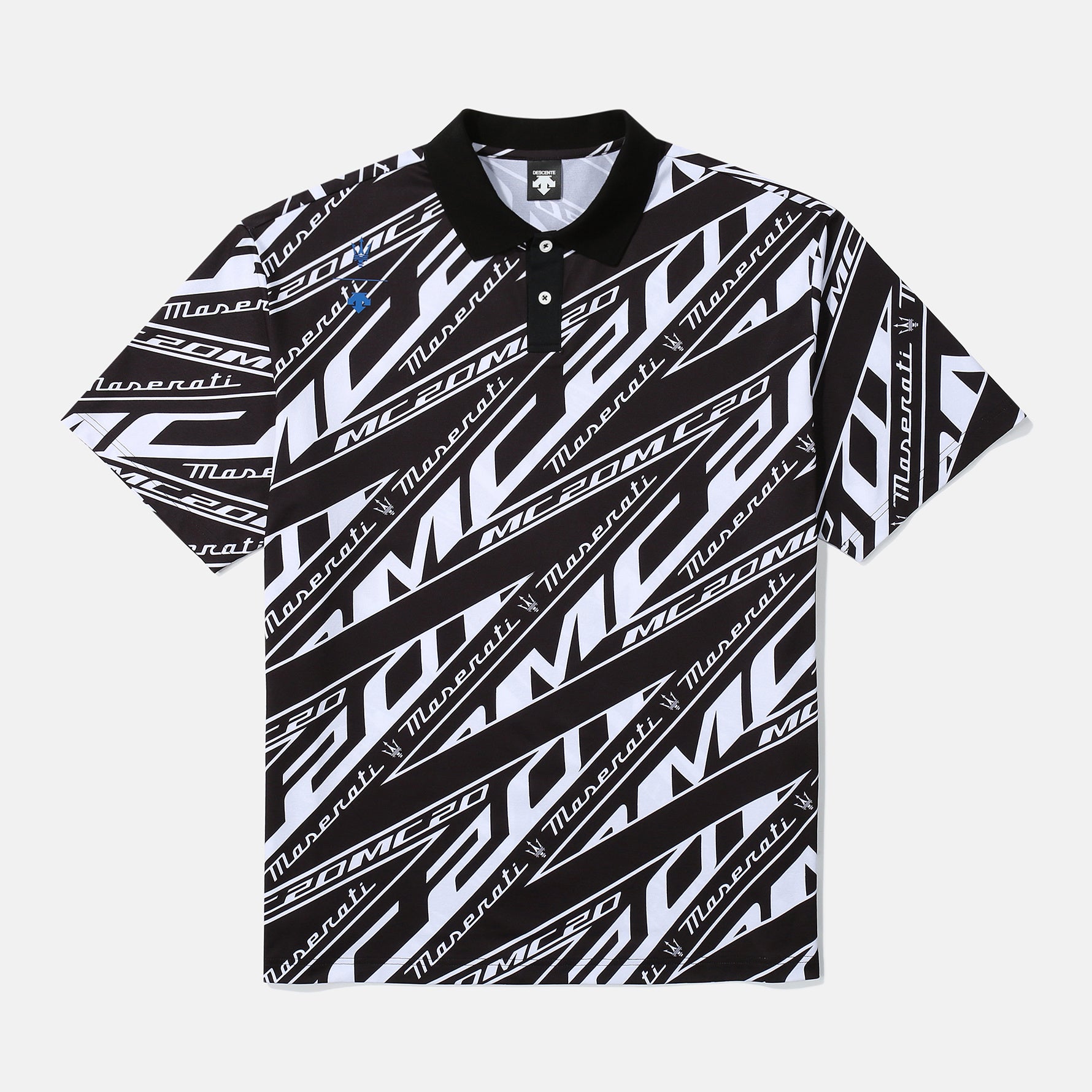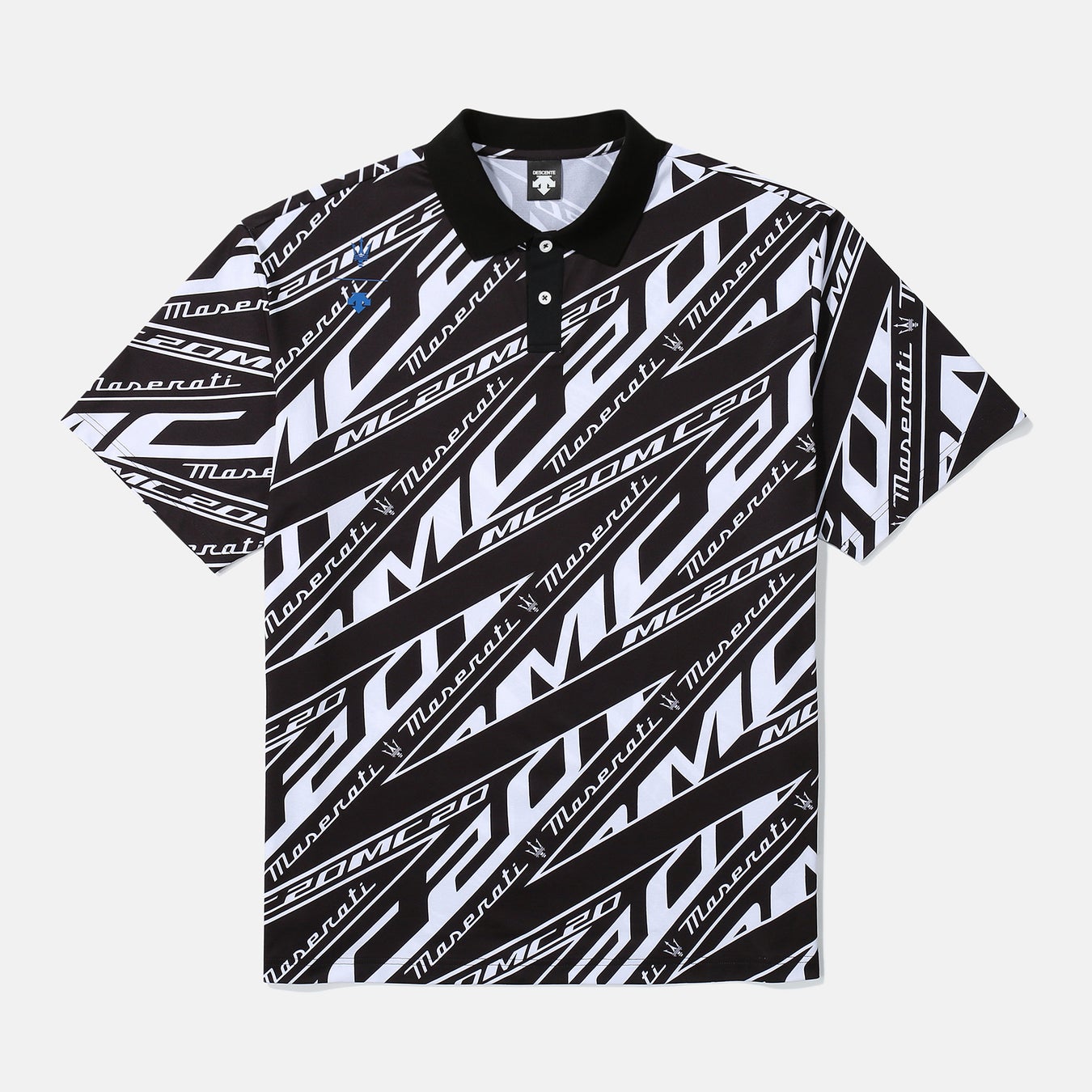 「MC20」のアクティブなイメージをモチーフにしたグラフィックパターンデザインが印象的な、吸汗速乾機能に優れた素材のポロシャツ。