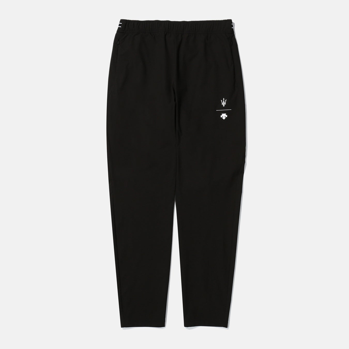 ワンポイントで入れたコラボロゴが印象的な運動快適性とスリムなフィット感を兼ね備えたテーパード型パンツ。ストレッチ性に優れたウーブン素材を採用。
