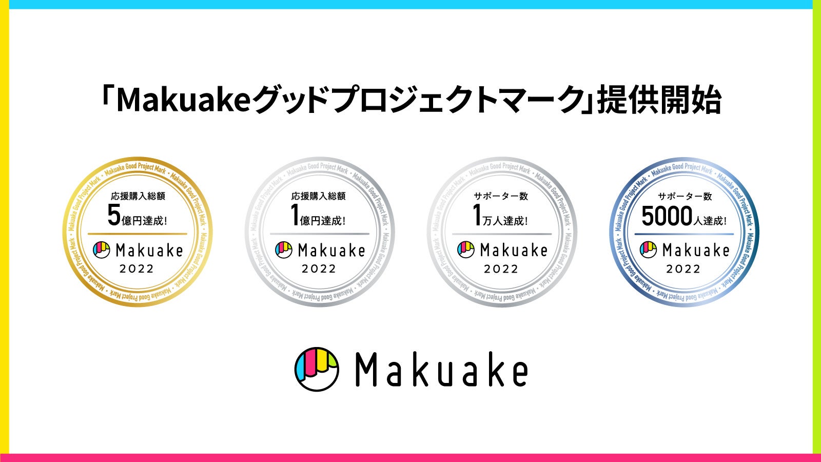株式会社マクアケ(本社:東京都渋谷区、代表取締役社長:中山亮太郎、以下「当社」)は、一定規模以上の応援購入総額やサポーター数を集めたプロジェクトを対象に、プロジェクトの実行者が一般販売時にその実績を販売促進に活用いただけ、生活者においては購入時の参考としていただける「Makuakeグッドプロジェクトマーク」の提供を6月より順次ご案内を開始します。