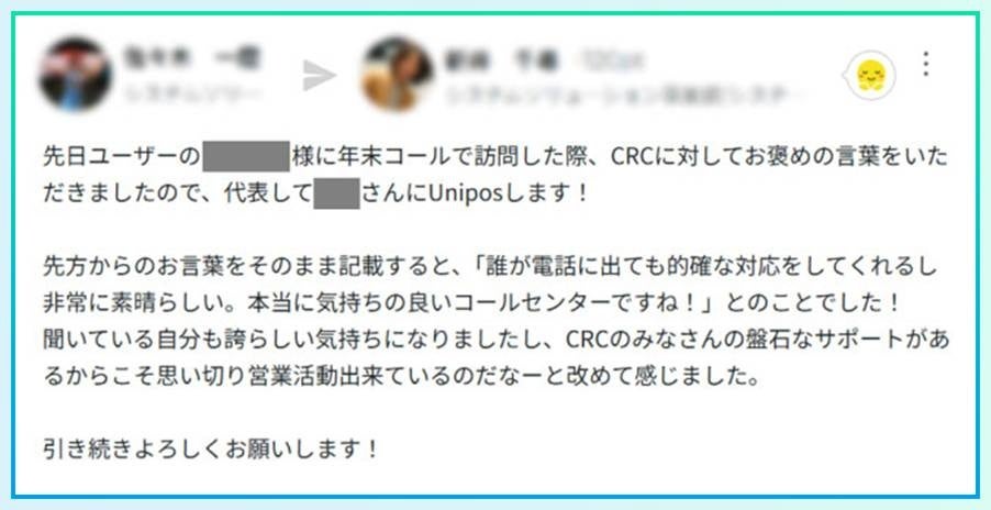 サポート業務の質の高さや、ユーザーから寄せられた感謝の声などが Uniposを通じて社内に広く共有されるようになりました。