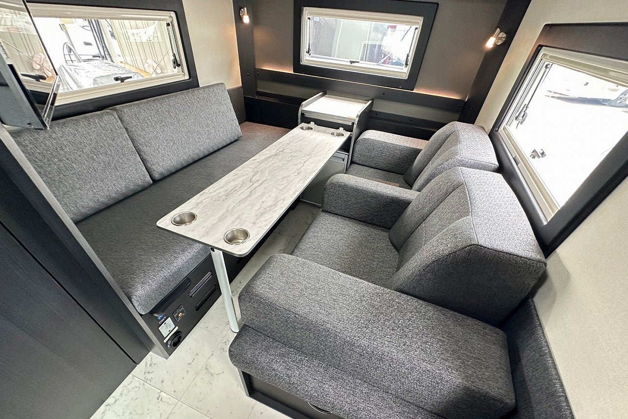 キャンピングカーには就寝スペースやリビング、エアコンなどが備え付けられており、現地での設営が不要な点も今回のサービスの特長です。