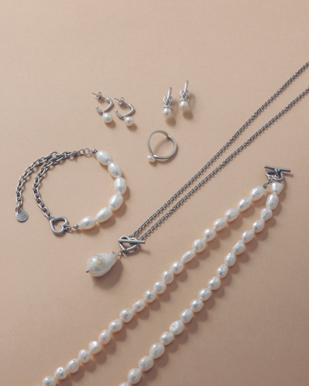 前回、象徴的なモチーフであったカスミソウの花言葉と同じ“幸福”や“感謝”の意味をもつパールをメイン素材にしたアイテムは、高級感を思わせる上品なコーディネートにも、カジュアルな日常のコーディネートにも合わせやすいアイテムに仕上げています。