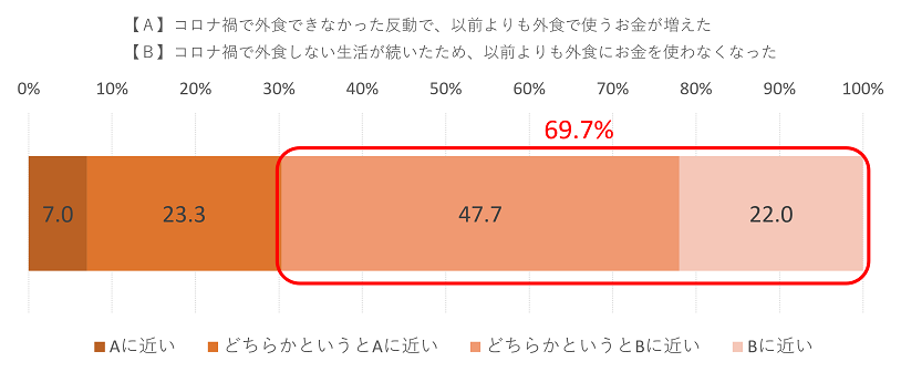 コロナ禍の影響で、約7割の人が「外食にお金を使わなくなった」と回答しています。