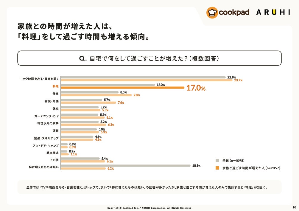 コロナ禍によって家族との時間が増えた人は、料理をして過ごす時間も増える傾向があることも分かっています。