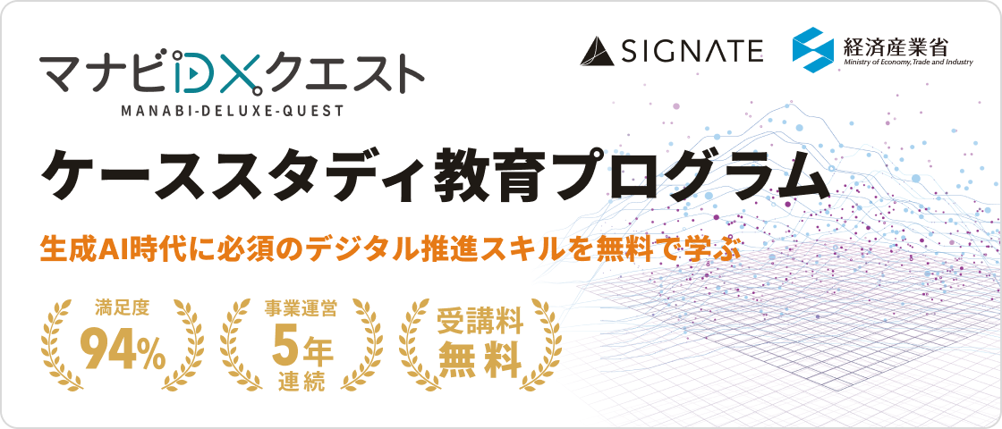 SIGNATE、経済産業省主催のデジタル人材育成プログラム「マナビDX Quest」を6年連続で支援。今年度参加者募集を開始。