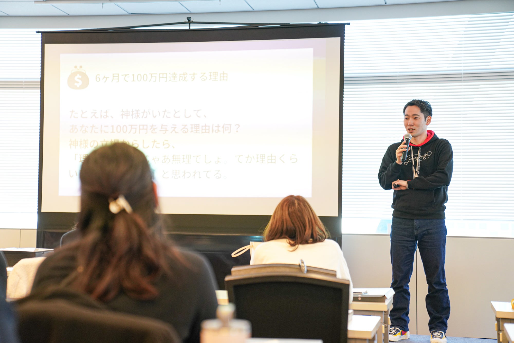 ▼WEBデザイナーとして月100万を達成するための考え方を話す大坪