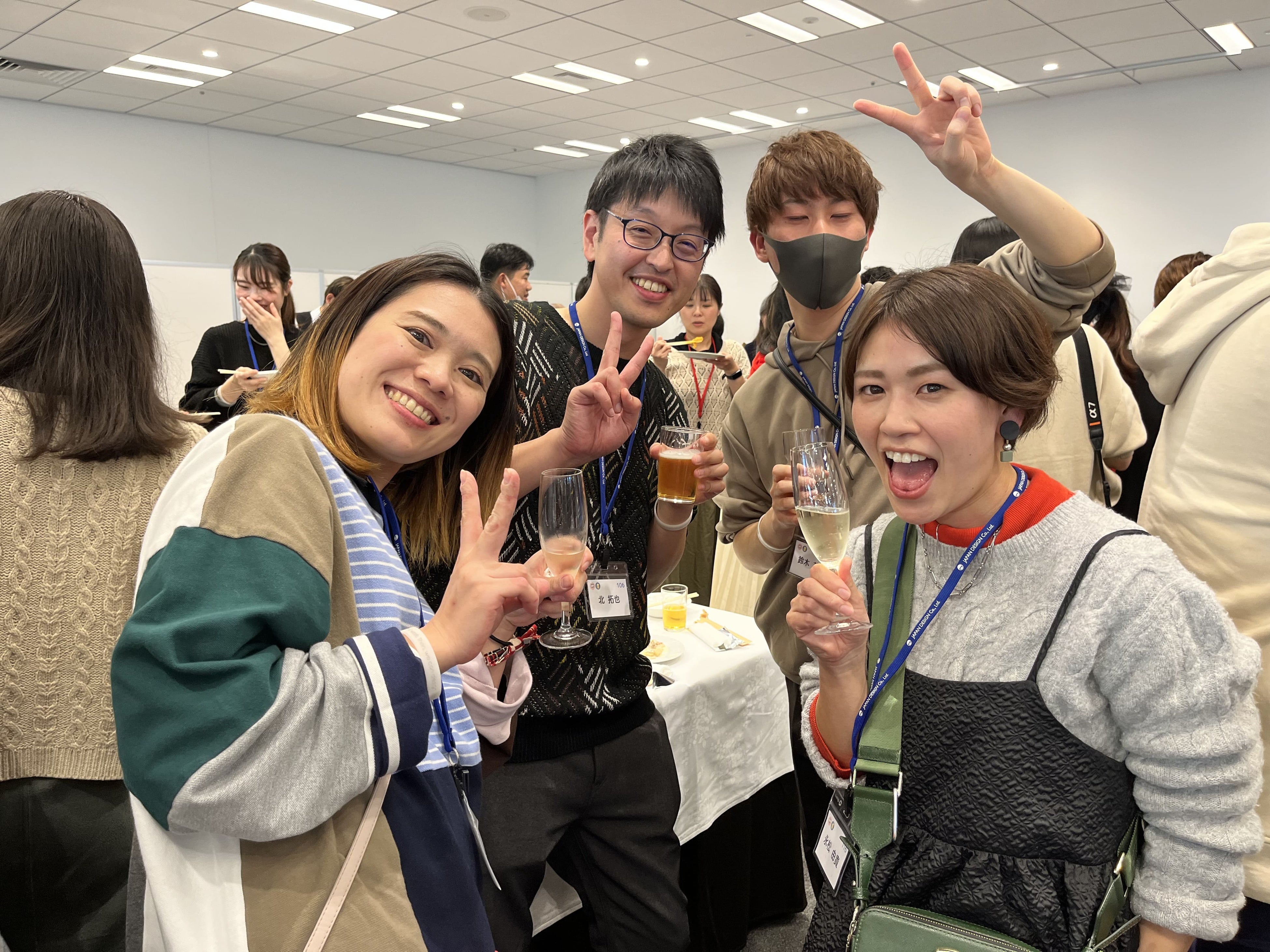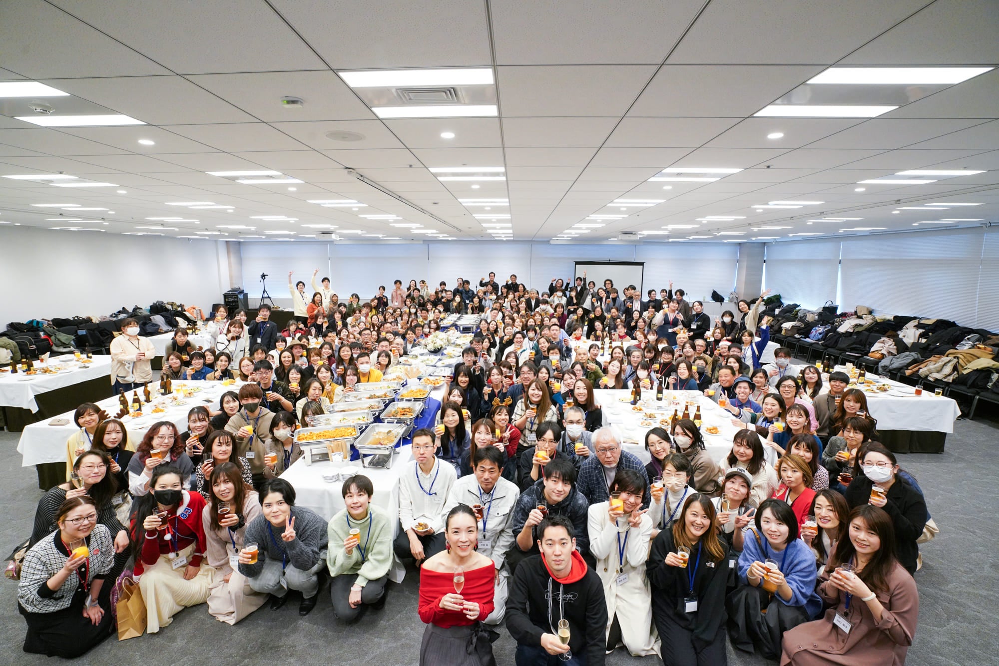 また、セミナー終了後には会場を移し大規模交流会も開催。普段はオンラインで交流ししているメンバーと豪華なケータリングやお酒などのドリンクを頂きながらのリアルな交流を楽しみ、7周年の感謝を伝えるためのmac bookなどが当たるプレゼント抽選会が行われ、大盛り上がりの1日となりました。