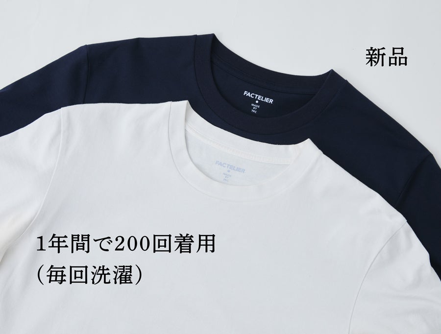 もちろんヘビロテしても風合いが変わらず、首も伸びにくく、透けにくい1枚を」。