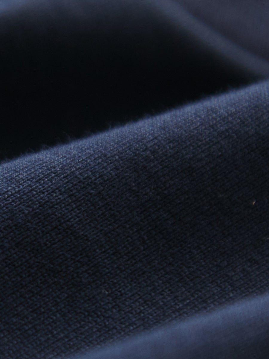 複数のコットンをブレンドした糸「40番手双糸(そうし)」を「26ゲージ」という目の詰め方で編み上げた生地。