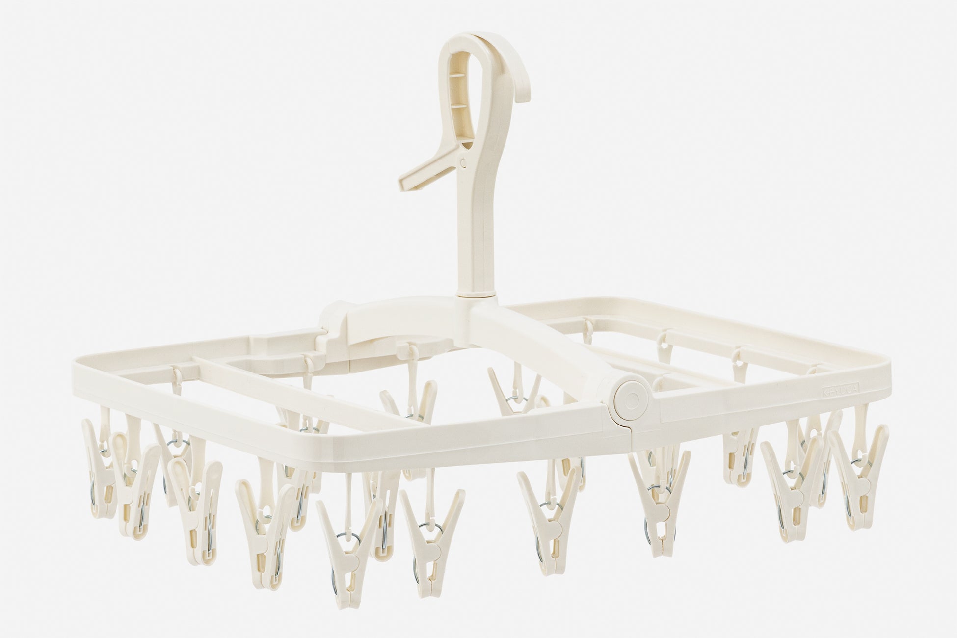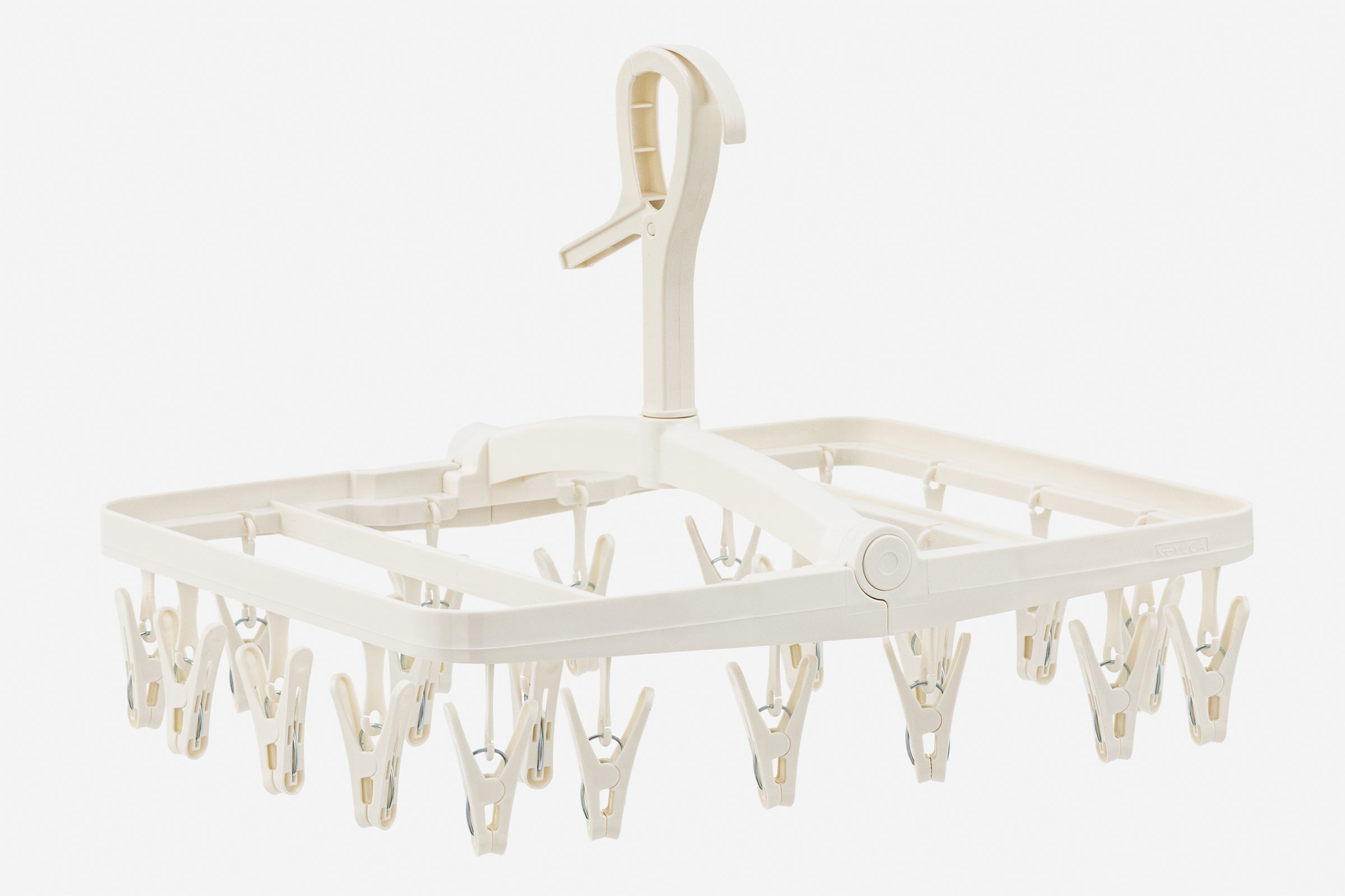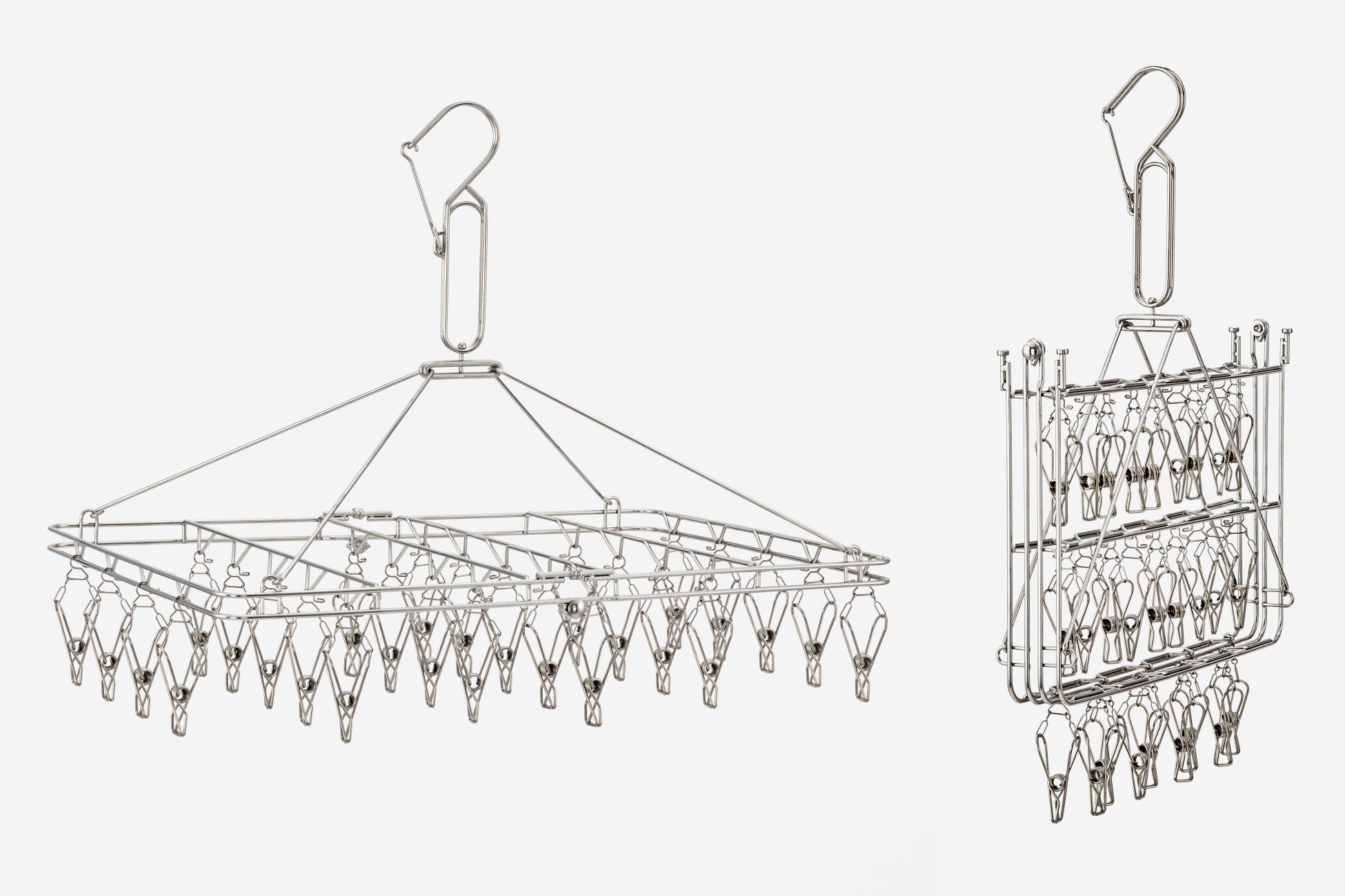 立ててコンパクトに収納可能な、軽量のピンチハンガー。