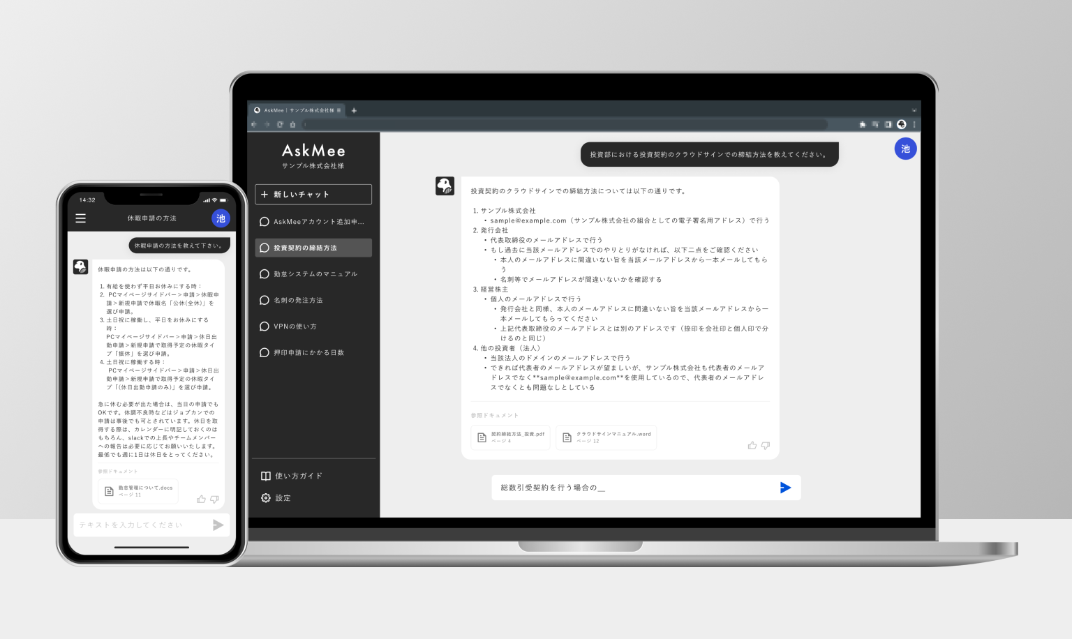 ※5月22日に「AskMee(アスクミー)」は「ChatMee Pro Powered by GPT-4」へ名称を変更いたしました。以下はリリース当時の文面を掲載しております。