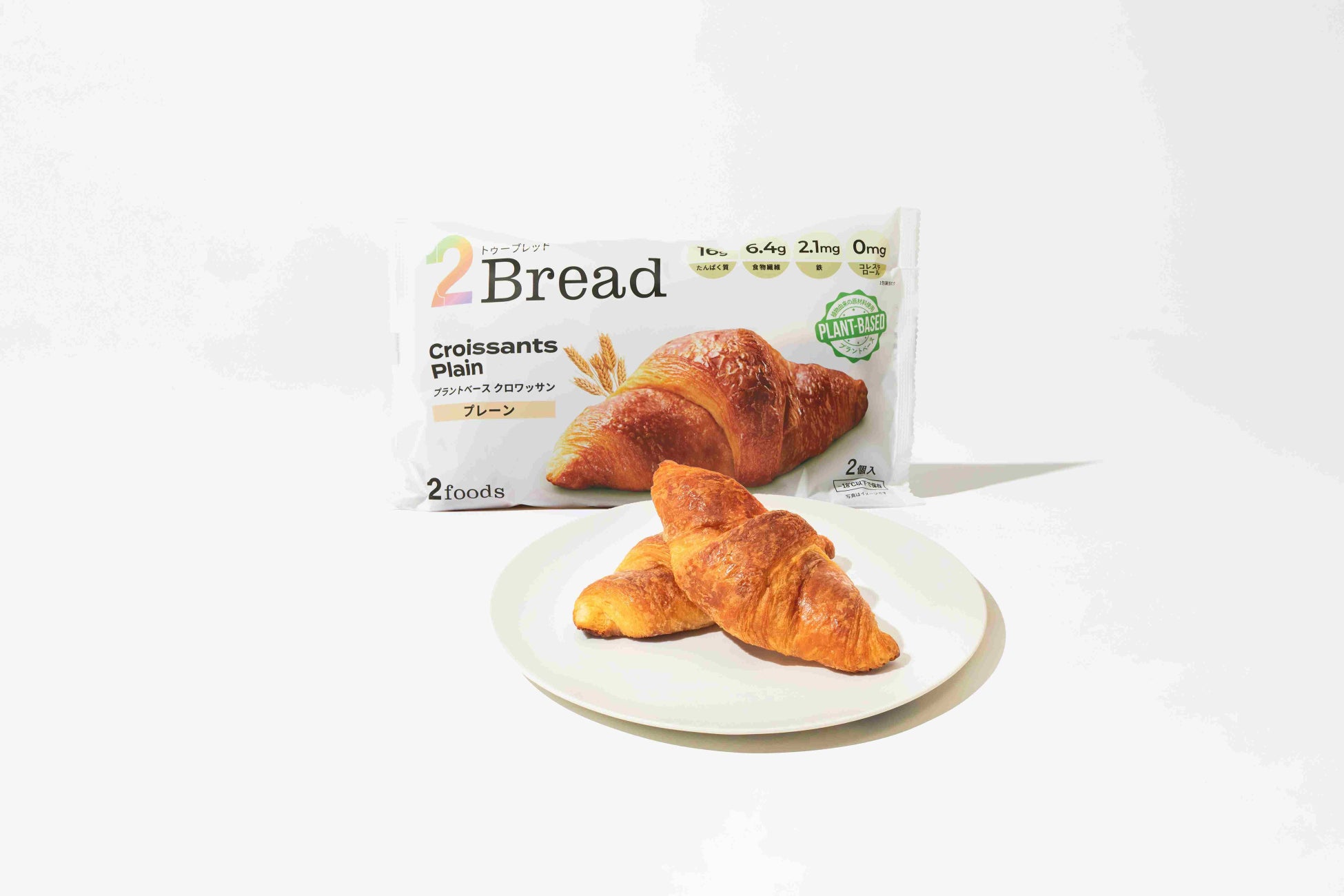 2Breadクロワッサンは、“サクッ”、“じゅわっ”、リッチで満足感のある味わいが楽しめる植物由来のクロワッサンです。クロワッサンに求めるおいしさと、植物由来の良さに加え、栄養バランスも追求しました。不足しがちな栄養素であるタンパク質や、食物繊維、鉄分、さらにパンで気になる糖質※6をカット、コレステロール0mgを実現しています。