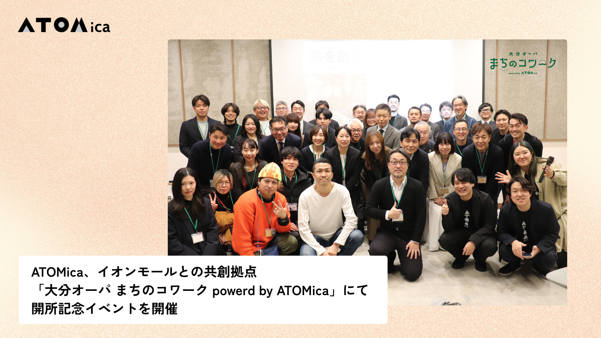 株式会社ATOMica(本社:宮崎県宮崎市、代表取締役Co-CEO:嶋田瑞生・南原一輝、以下ATOMica)は、イオンモール株式会社(本社:千葉県千葉市、代表取締役社長:大野 惠司、以下「イオンモール」)との協業によりオープンした地域共創型コワーキングオフィス「大分オーパ まちのコワーク powered by ATOMica」(以下「まちのコワーク」)にて、2026年3月6日(金)に開所記念オープニングイベントを開催しました。