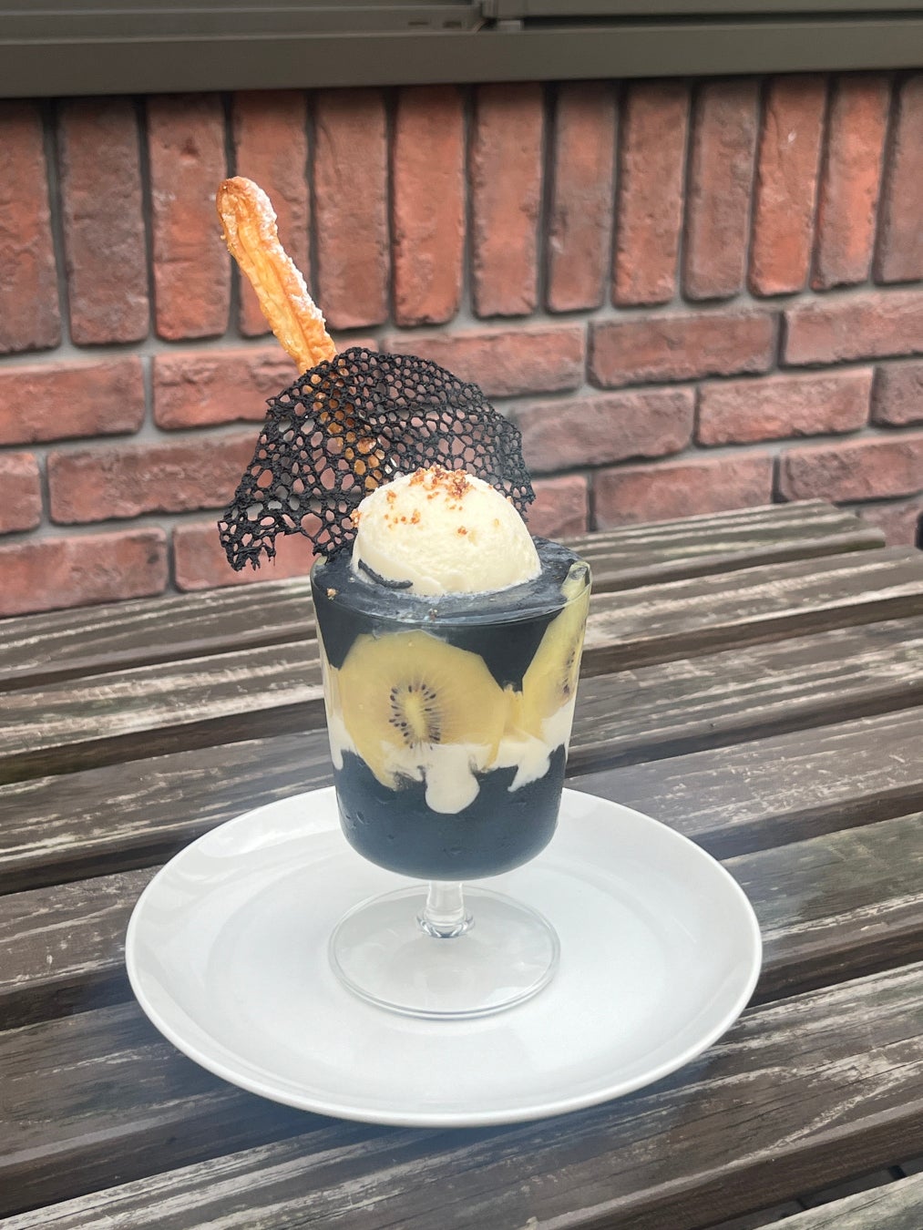 鋳物をイメージしたチャコールのクリームは、その見た目と美味しさにきっと驚かされるでしょう。