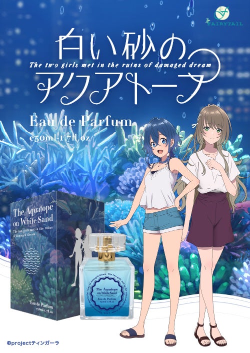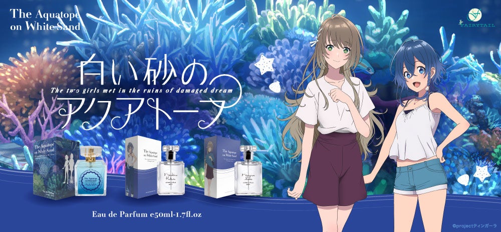 TVアニメ「白い砂のアクアトープ」より、海咲野くくる、宮沢風花をイメージした香水、作品の舞台になった“がまがま水族館”をイメージした香水が発売です!