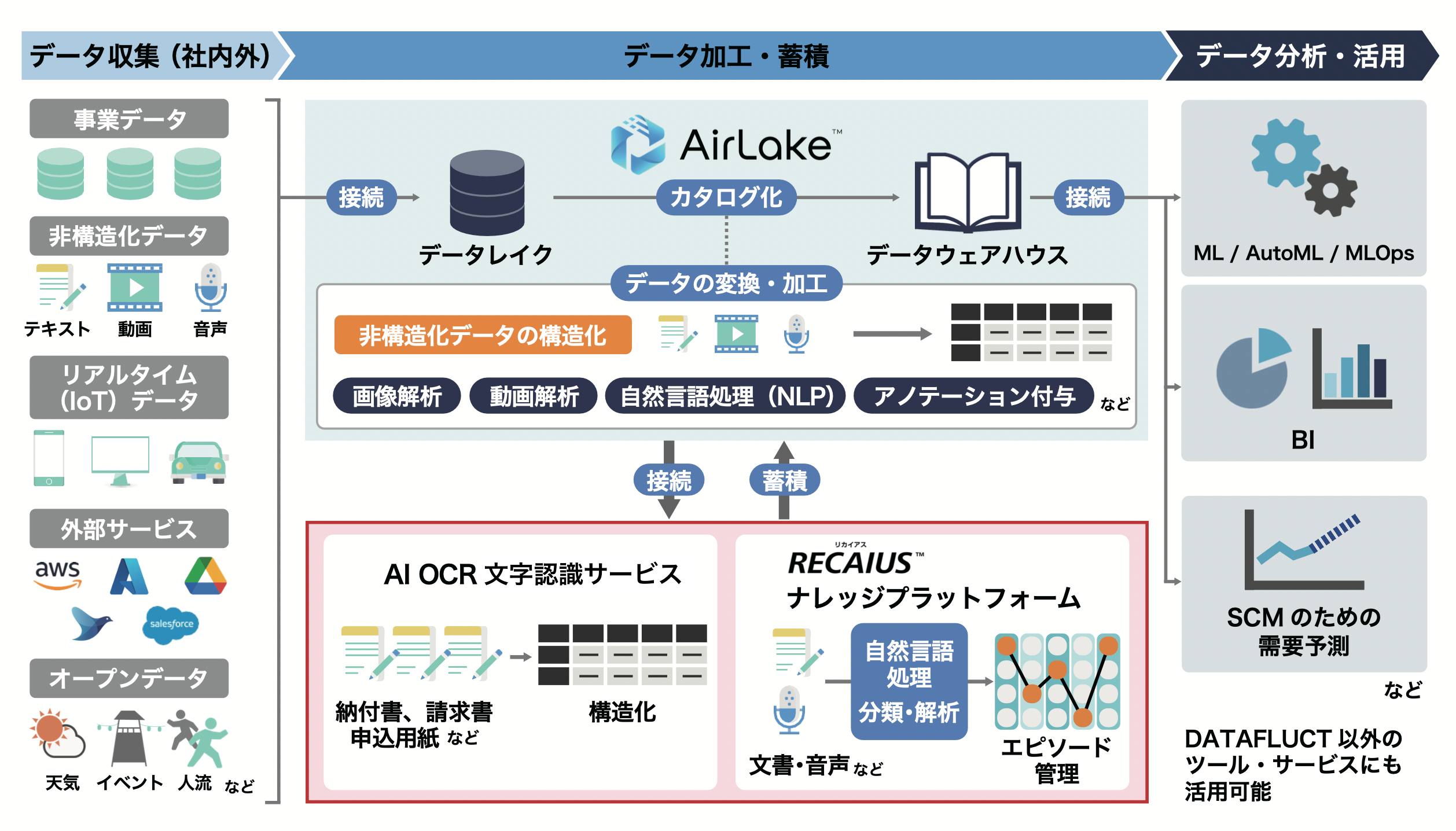 書類のデータ読取から整理・共有・活用までをワンストップで実現する、データ基盤「AirLake」と東芝デジタルソリューションズの「AI OCR文字認識サービス」「RECAIUSナレッジプラットフォーム」の連携サービス