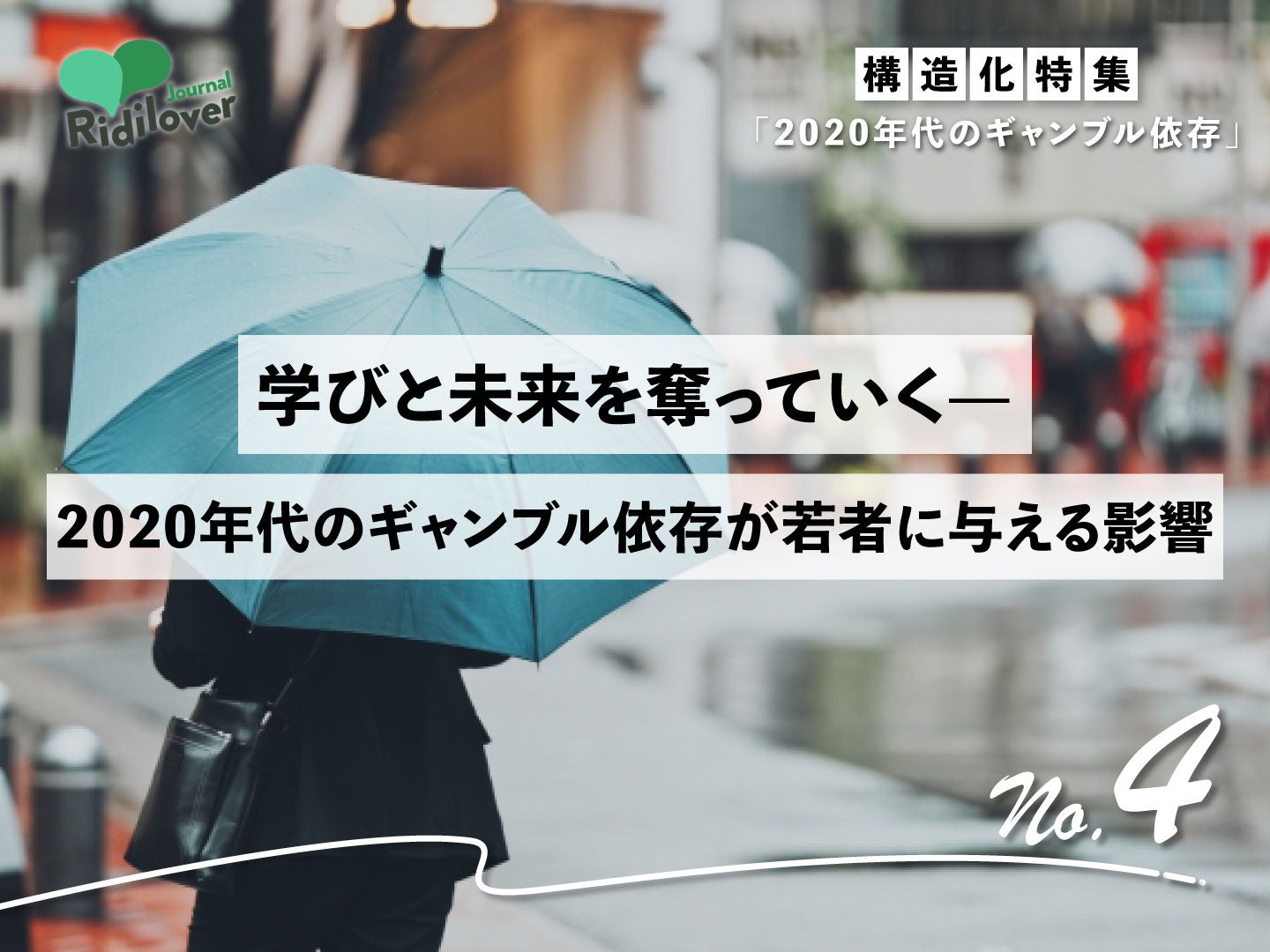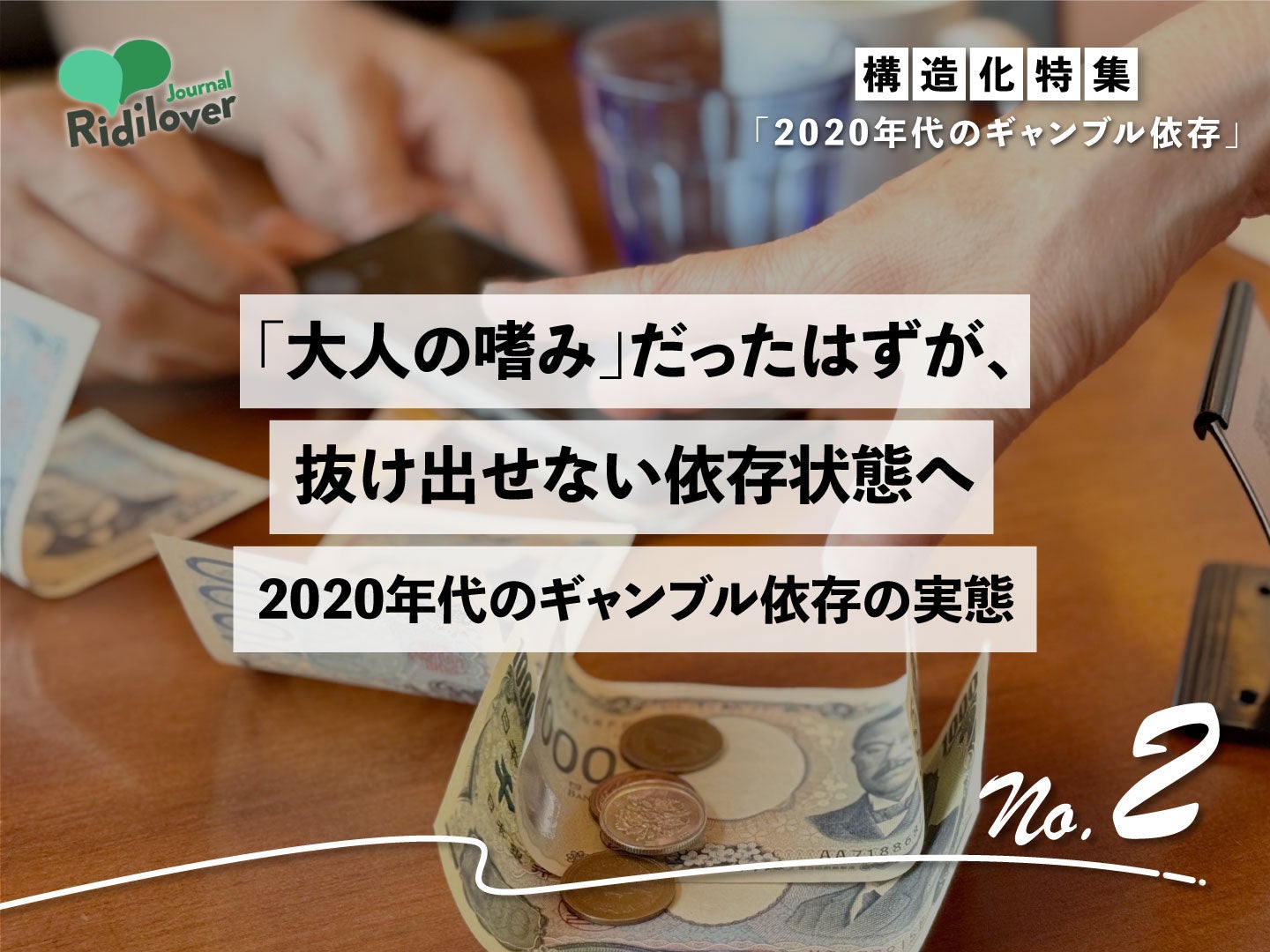 株式会社Ridilover(本社:東京都文京区、代表:安部敏樹)は、社会課題に特化したWebメディア「リディラバジャーナル」にて、構造化特集「2020年代のギャンブル依存」全6回を公開しました。