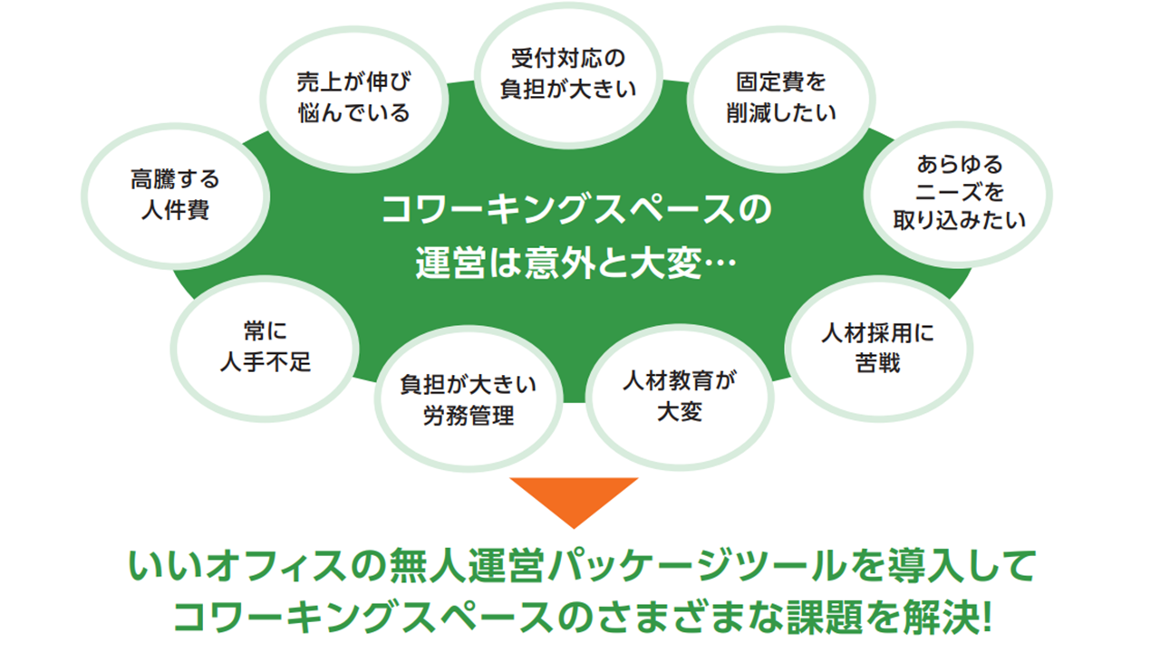 人手不足・売上停滞・ニーズ多様化…コワーキングスペースやシェアオフィス、貸会議室の経営課題を省人化・無人化で解決!いいオフィスが無人運営パッケージをリリース